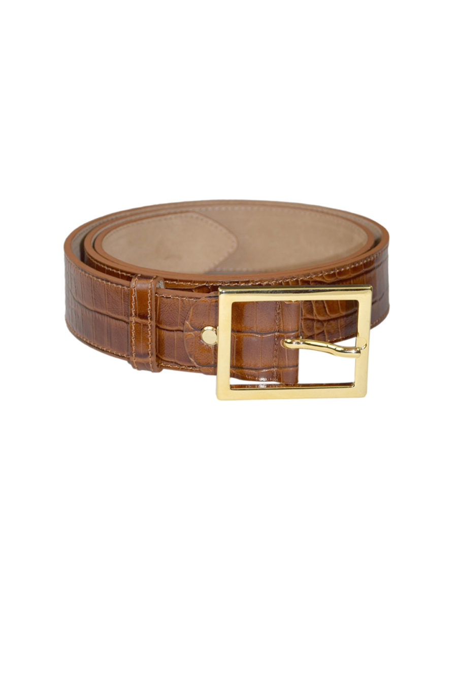 Gürtel aus Leder in Krokoprägung mit Goldschnalle, 4 cm breit