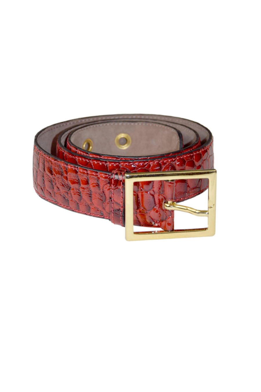 Gürtel aus Leder in Krokoprägung mit Goldschnalle, 4 cm. breit