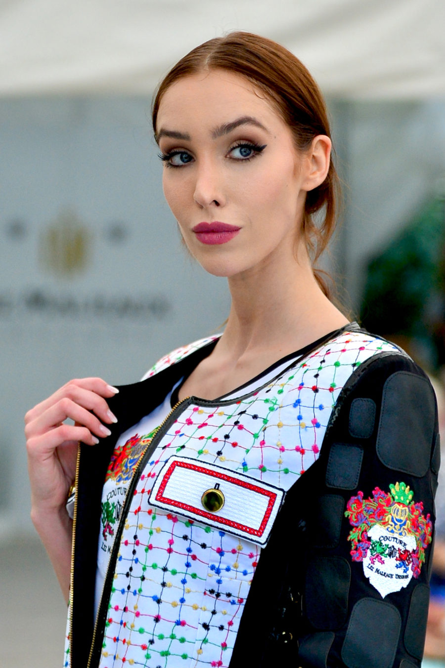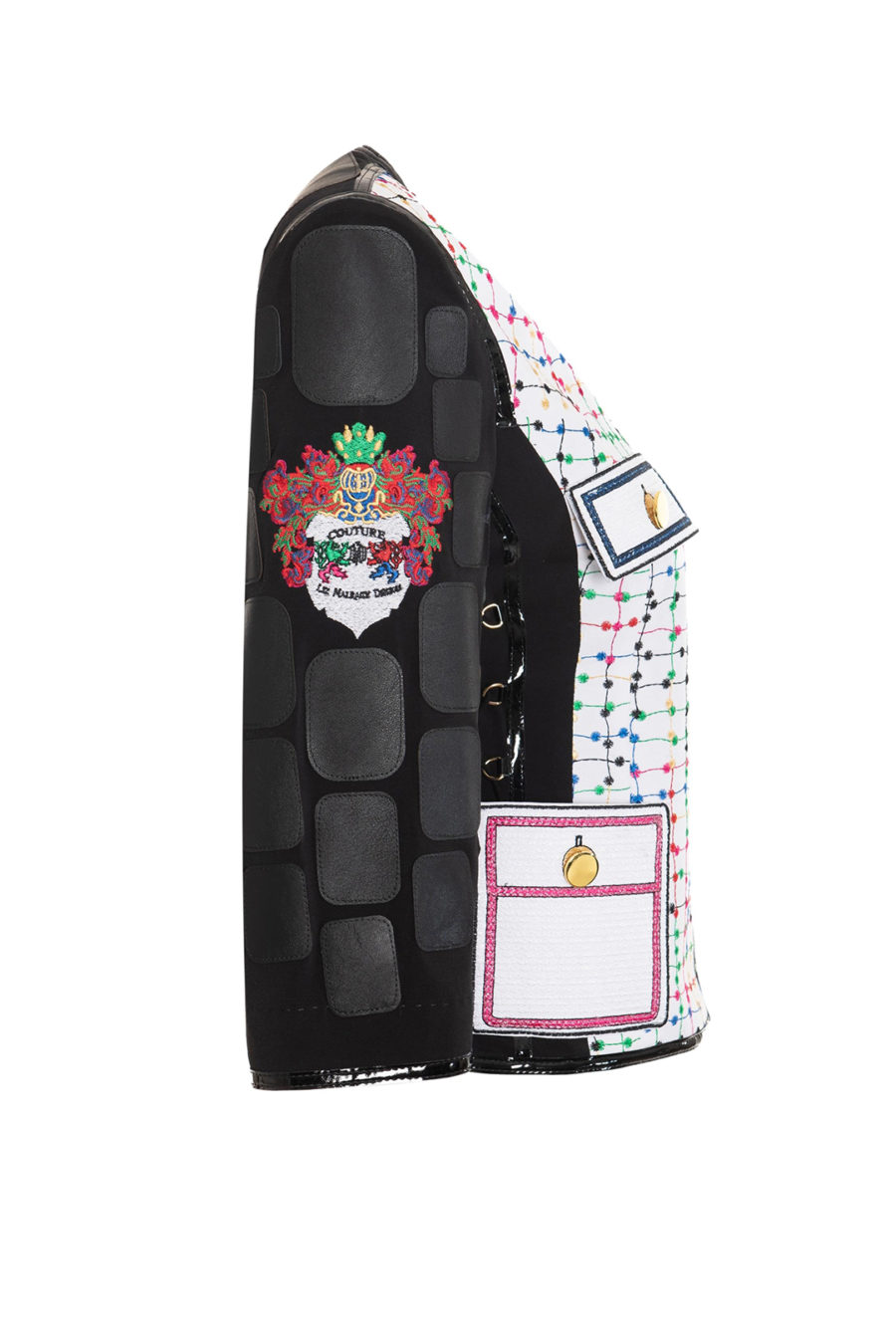 Haute Couture- Jacke mit “Bouclé-embroidery” am Vorderteil, 345.000 ST. gesticktenTaschen, Nappalederpatches, Multisize