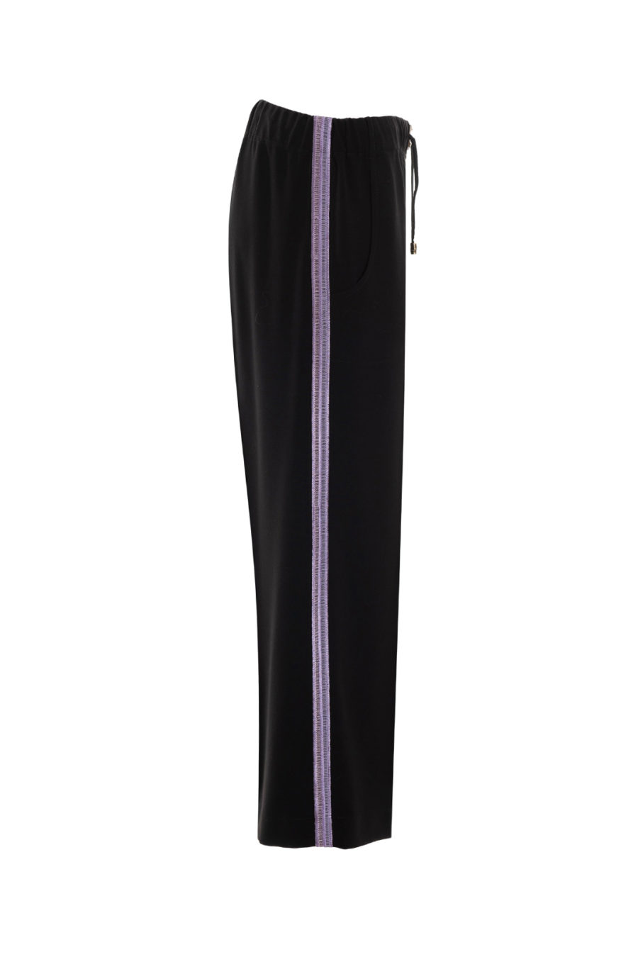 Hose aus Bi-Stretch, mit 2 cm breiter gestickter Bordüre und seitlichen Taschen 7/8 Länge
