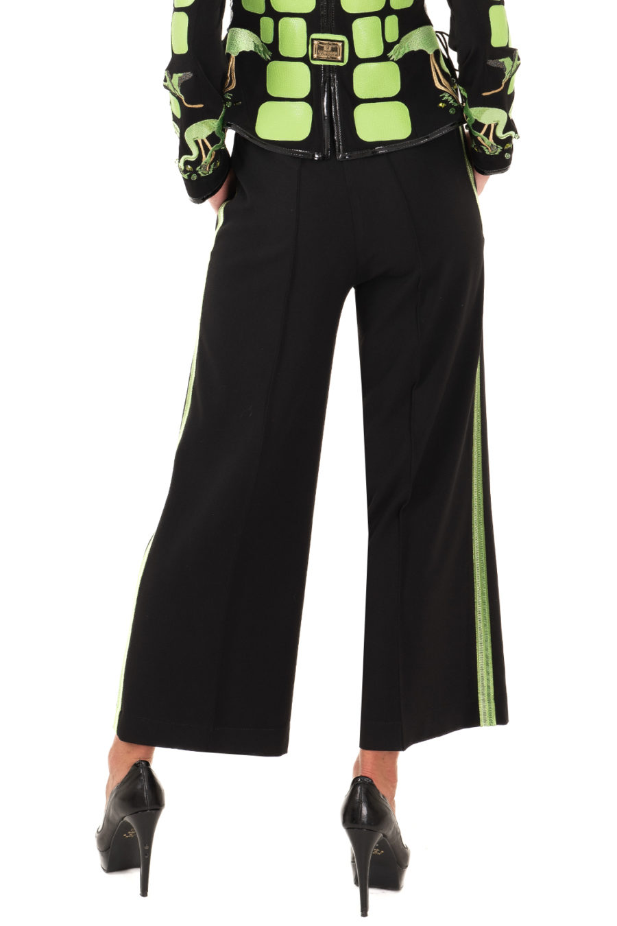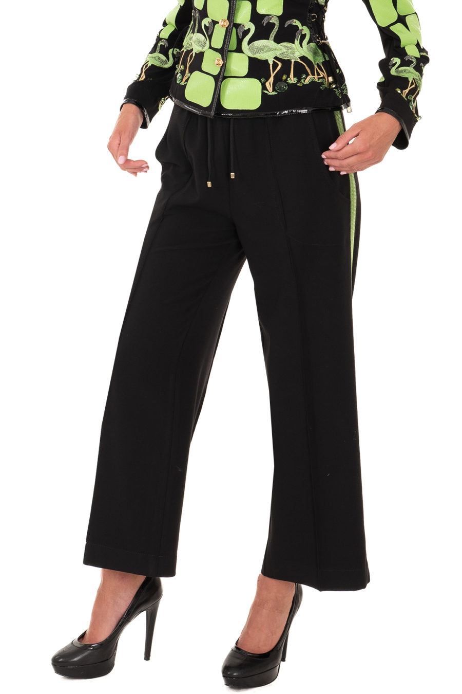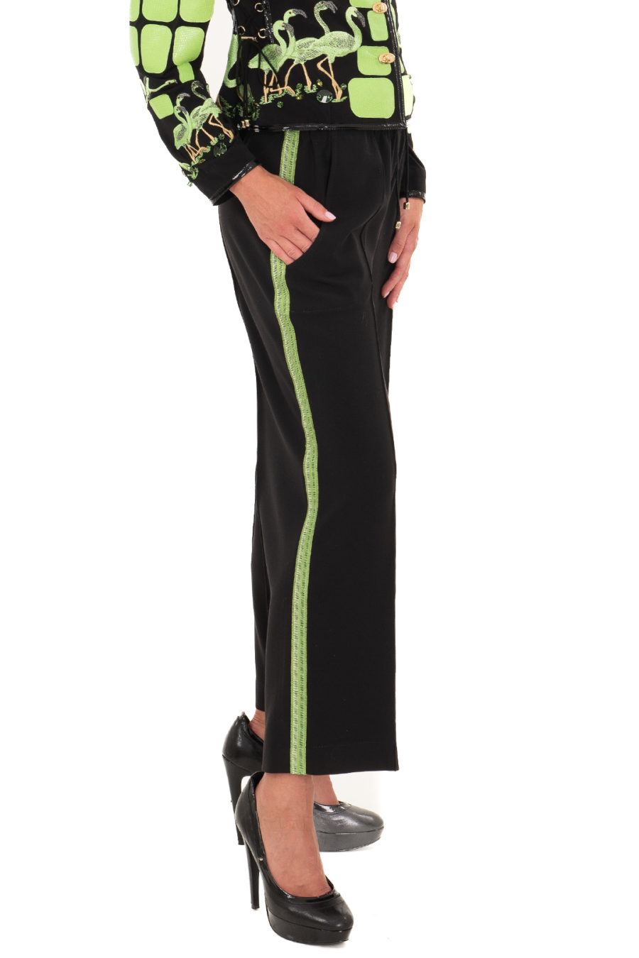 Hose aus Bi-Stretch, mit 2 cm breiter gestickter Bordüre und seitlichen Taschen 7/8 Länge
