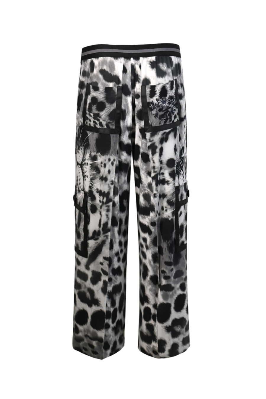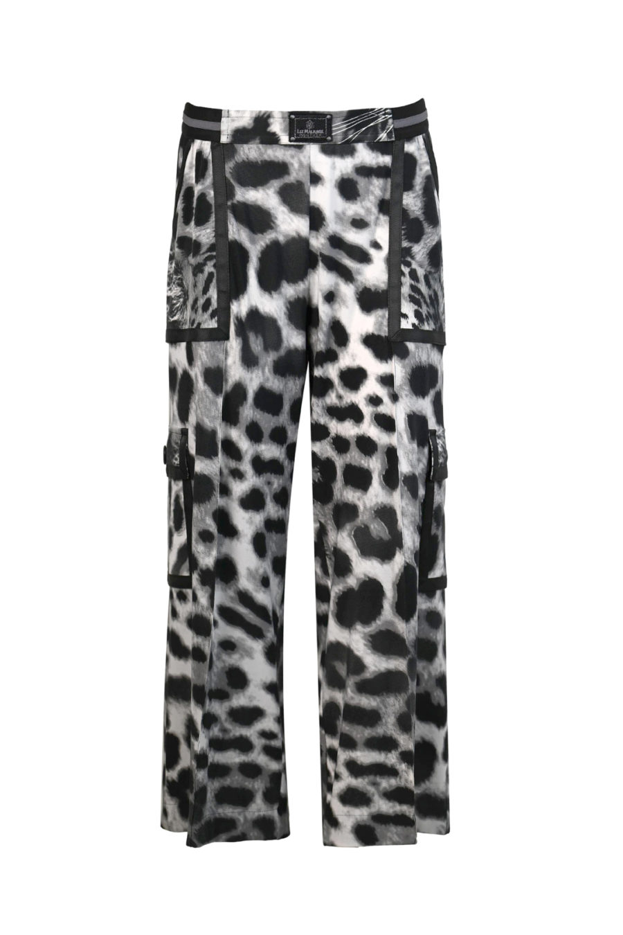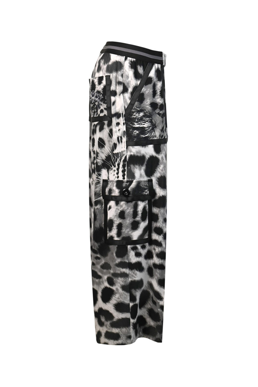 Hose in 7/8 Länge aus Single-Jersey im Safari-Print, mit 6 aufgesetzten Taschen, schwarzen Kontrasten und elastischen Bündchen