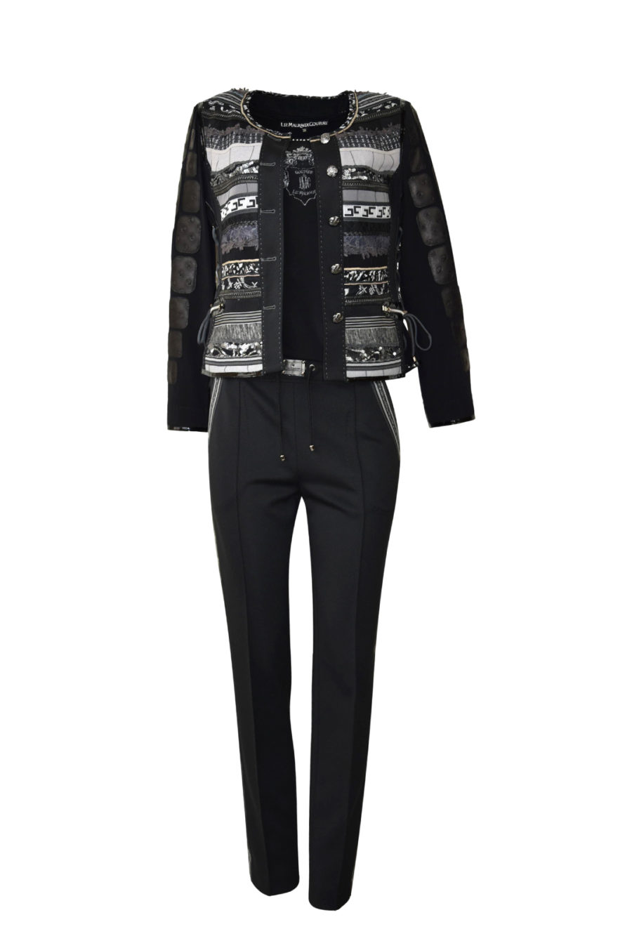 Hose mit gestickter seitlicher Bordüre und Taschen, Doublejersey
