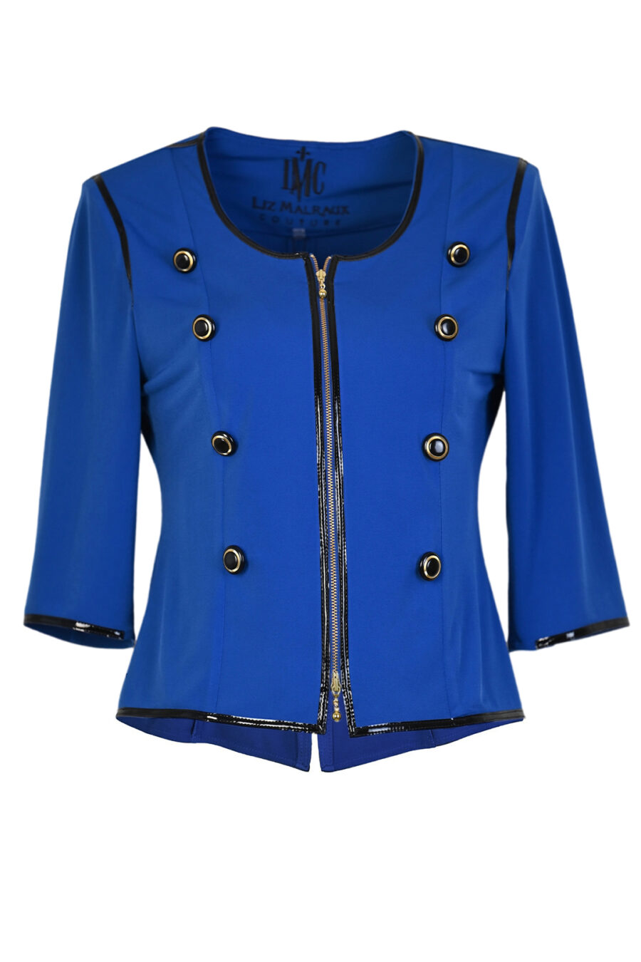 Jacke aus Singlejersey, mit schwarzen Kontrasten und 8 Zierknöpfen, mit 3/4 Ärmeln