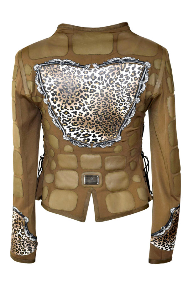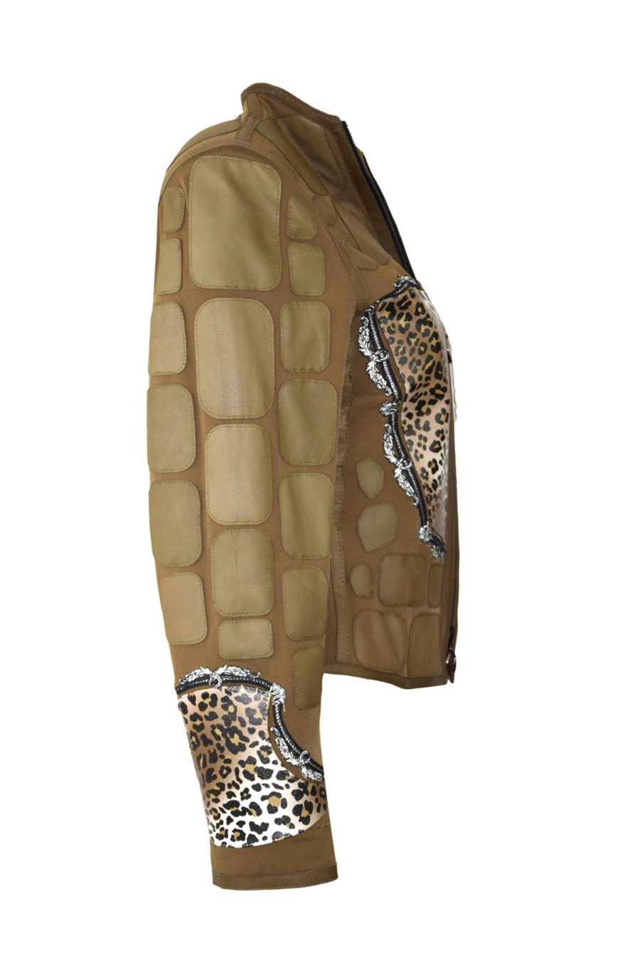 Spencerjacke mit bedrucktem Ledereinsatz, Nappalederpatches und “Amirage-embroidery”, Multisize