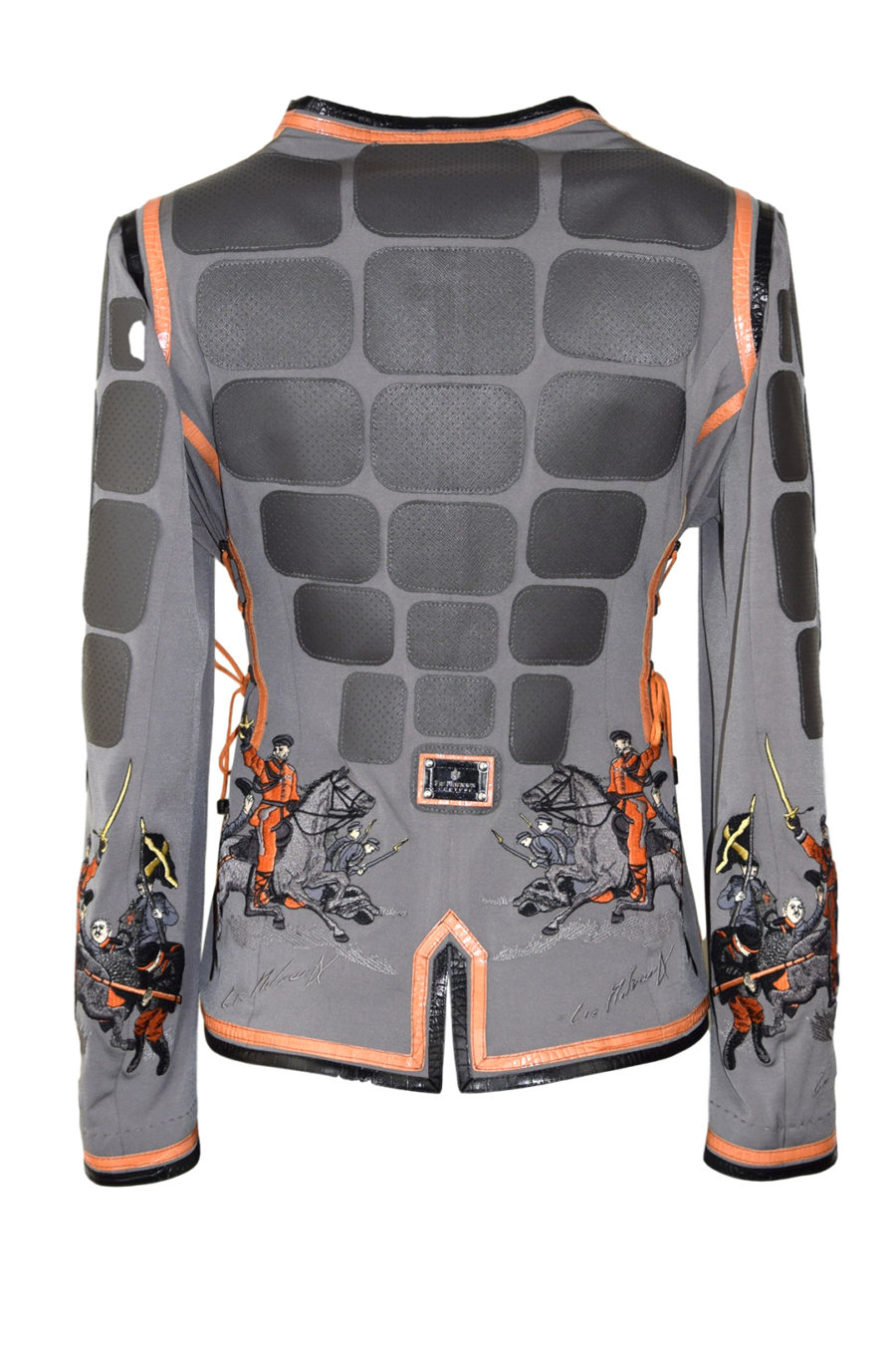 Jacke mit “Calvarie embroidery”, 4 Motive, Lederpatches perforiert