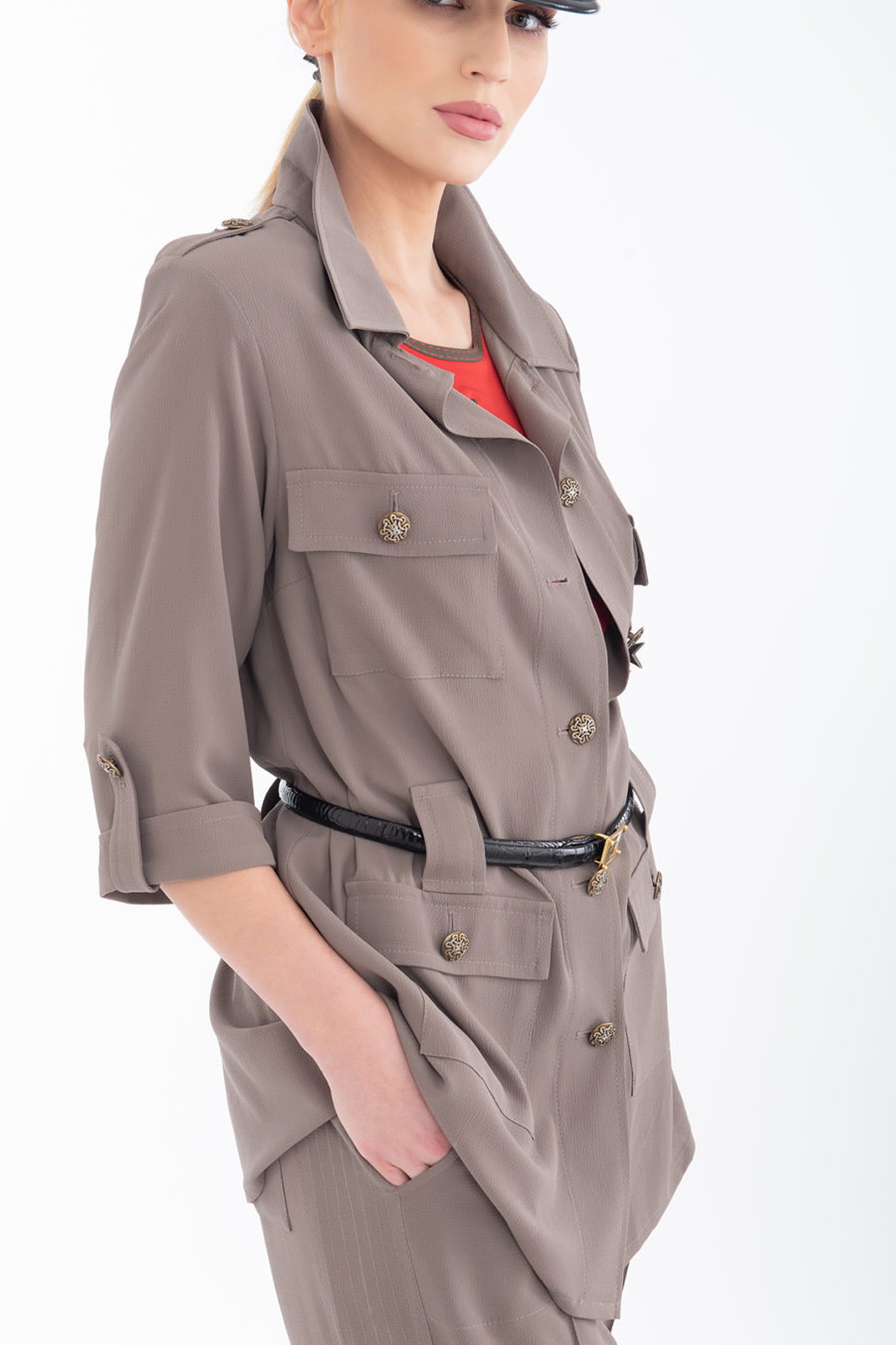 Jacke im Safari-Still aus pflegeleichten Crepe, mit aufgesetzten Taschen und Gürtel. Das gerade geschnittene Design komplettiert Ihren lässigen Freizeitlook.