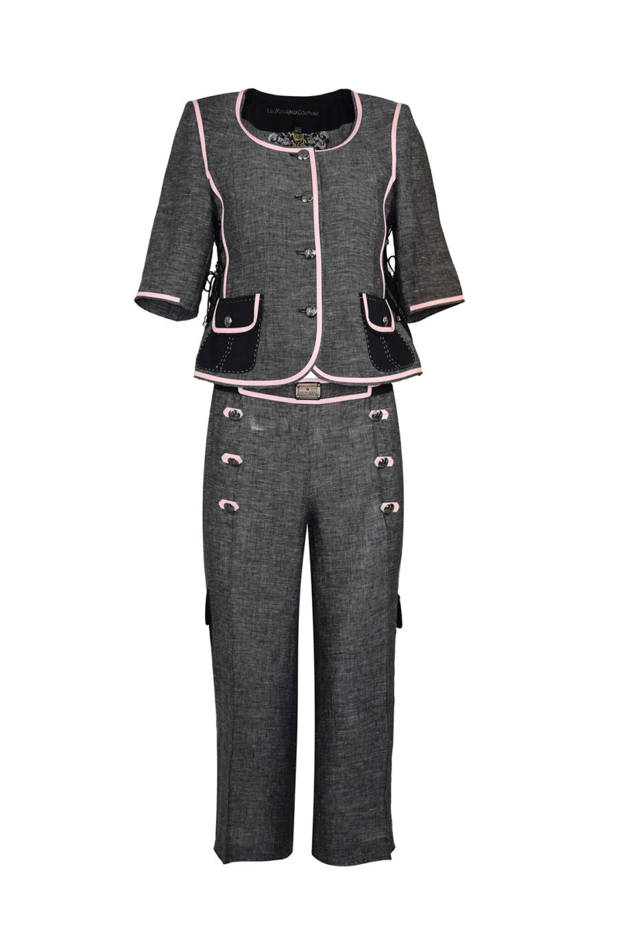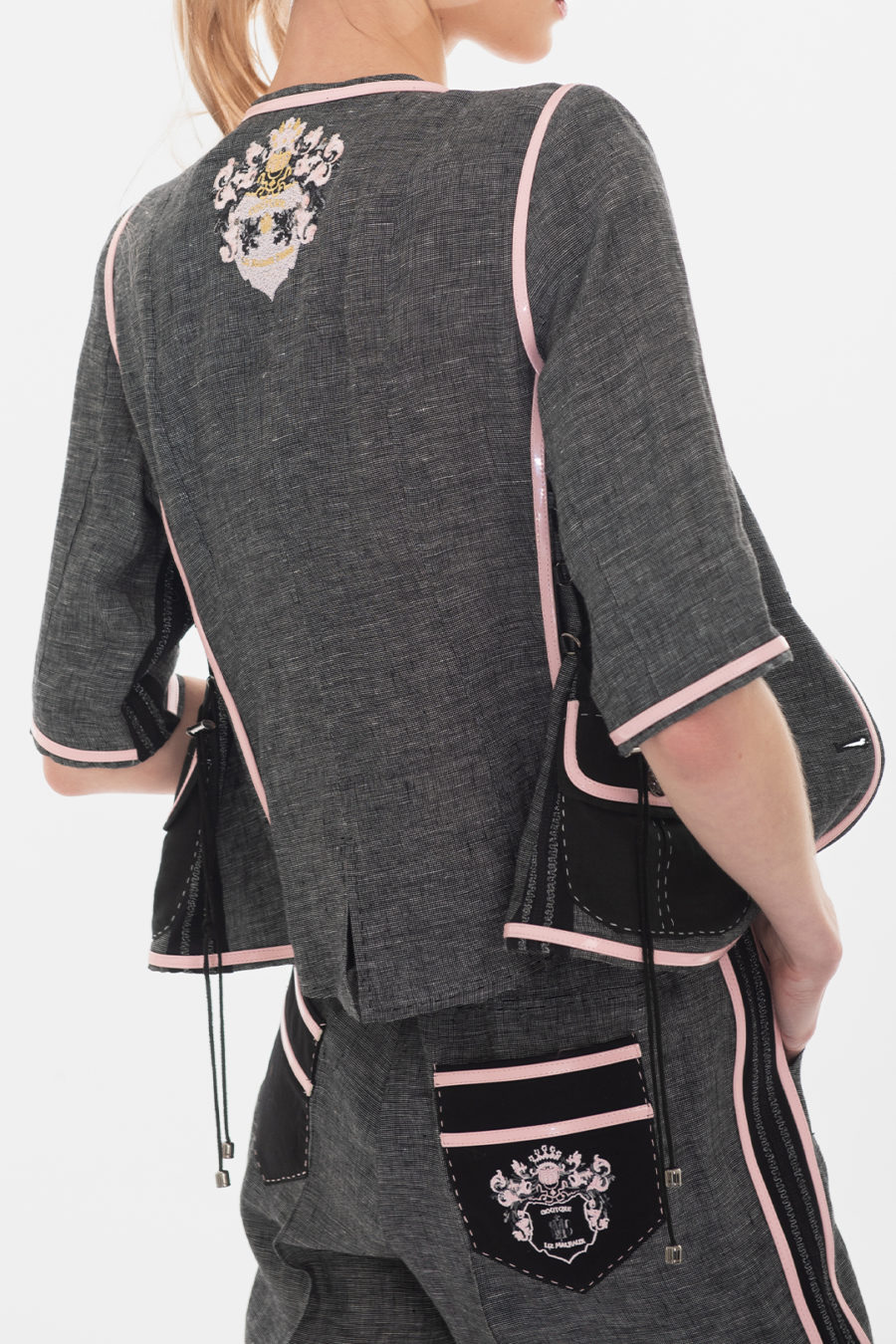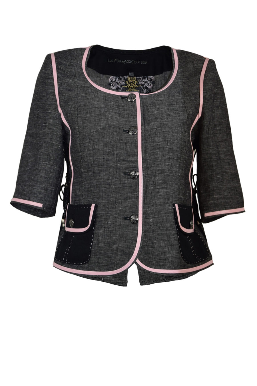 Jacke in graphit-melange Leinen, mit Cargo-Taschen und rosé Lackkontrasten, Multisize, Kurzarm