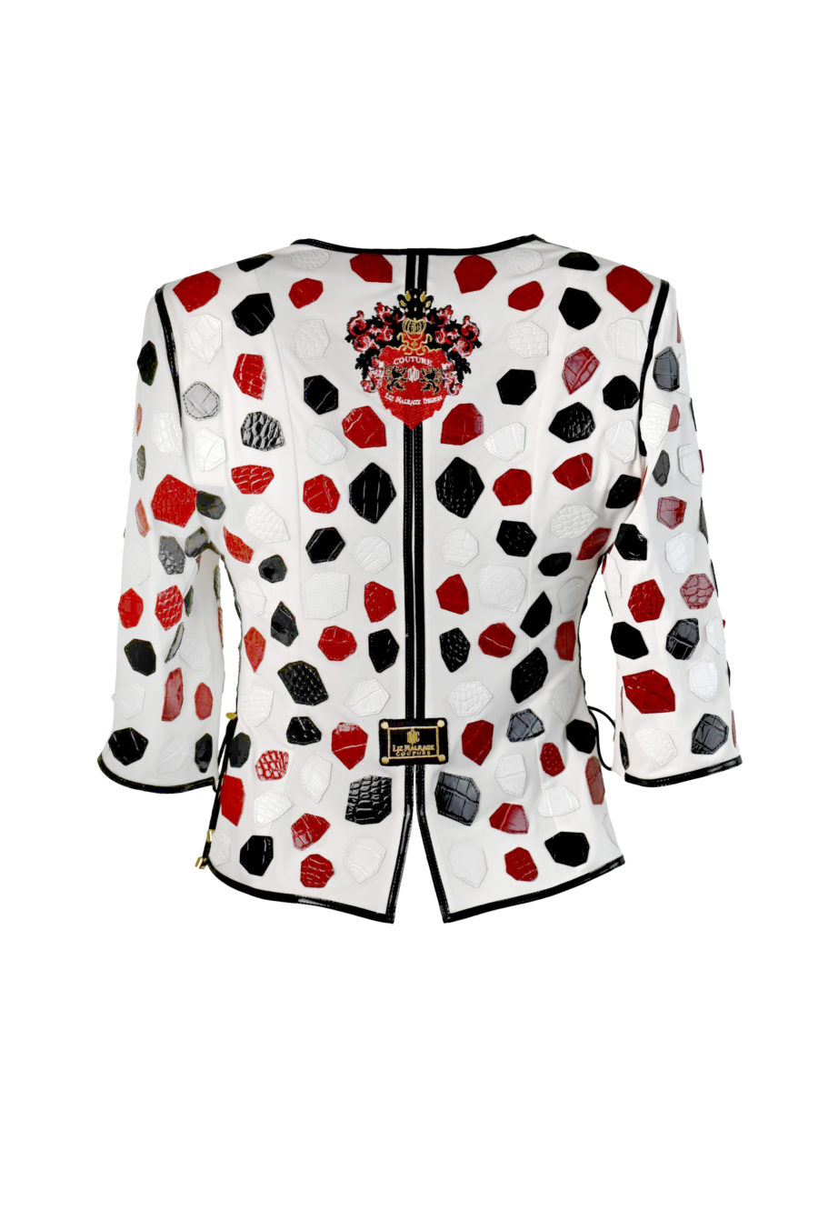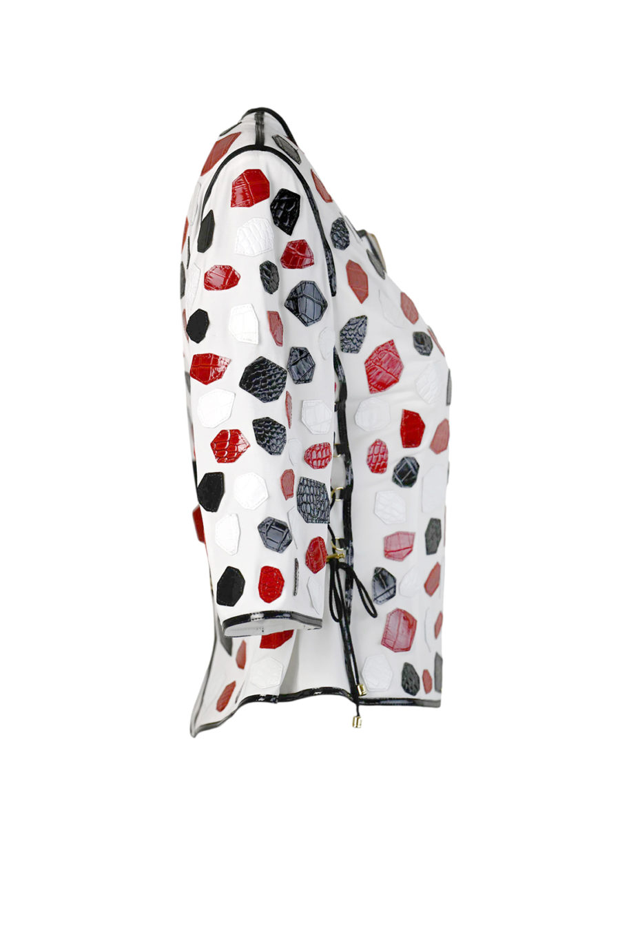 Jacke mit 290 Diamant-Patches in Kroko-Optik auf Single-Jersey appliziert, mit Lackkontrasten, vorne mit Zipp geschlossen, 3/4-Ärmel