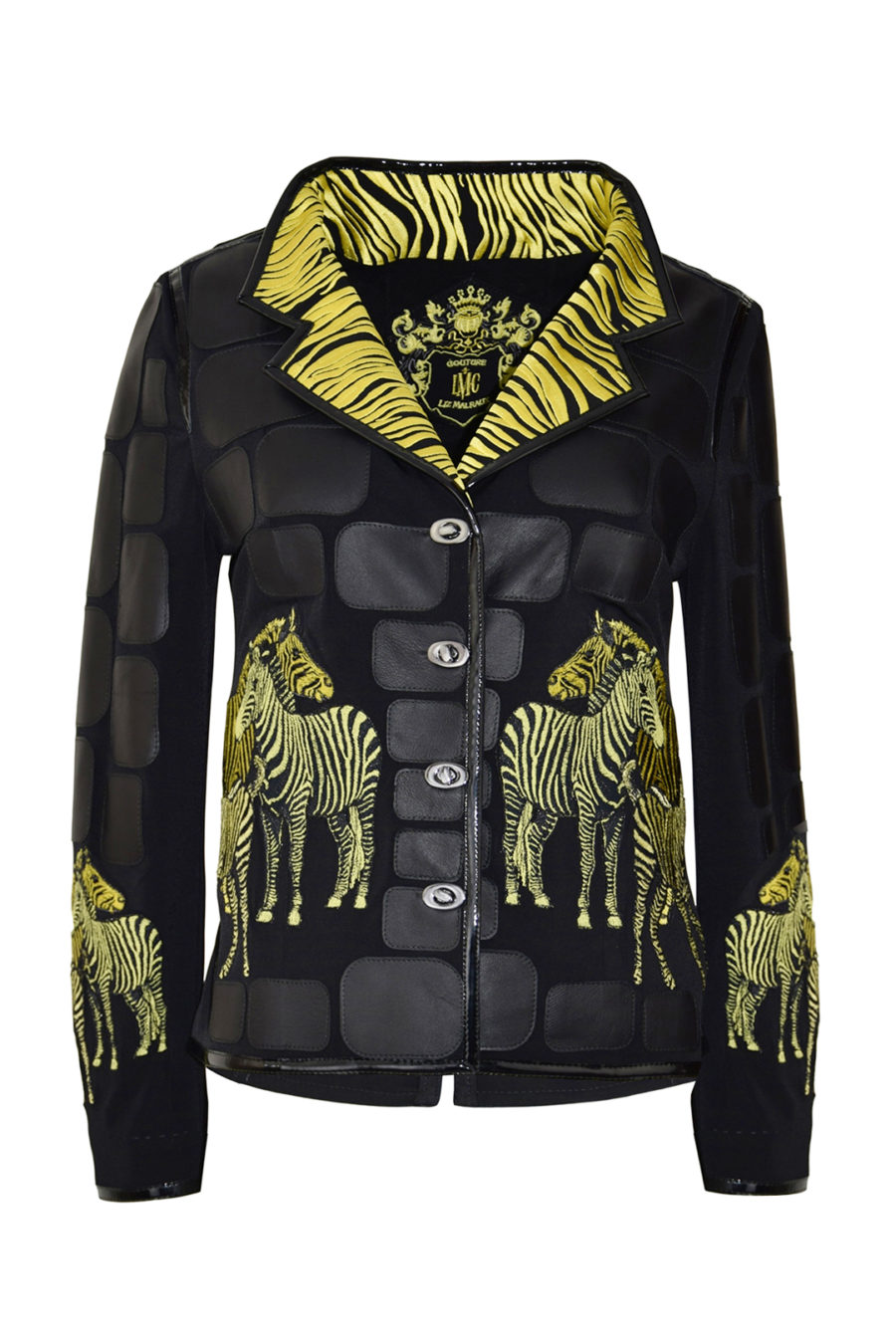 Jacke mit besticktem Revers, Nappaleder-Patches, und “zebra-embroidery” 4 Motive