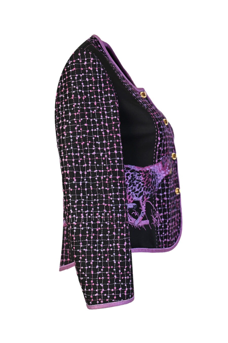 Jacke mit “gepard-embroidery” 2-Motive, mit Patches aus Leder in Krokoptik, 3/4 Ärmeln