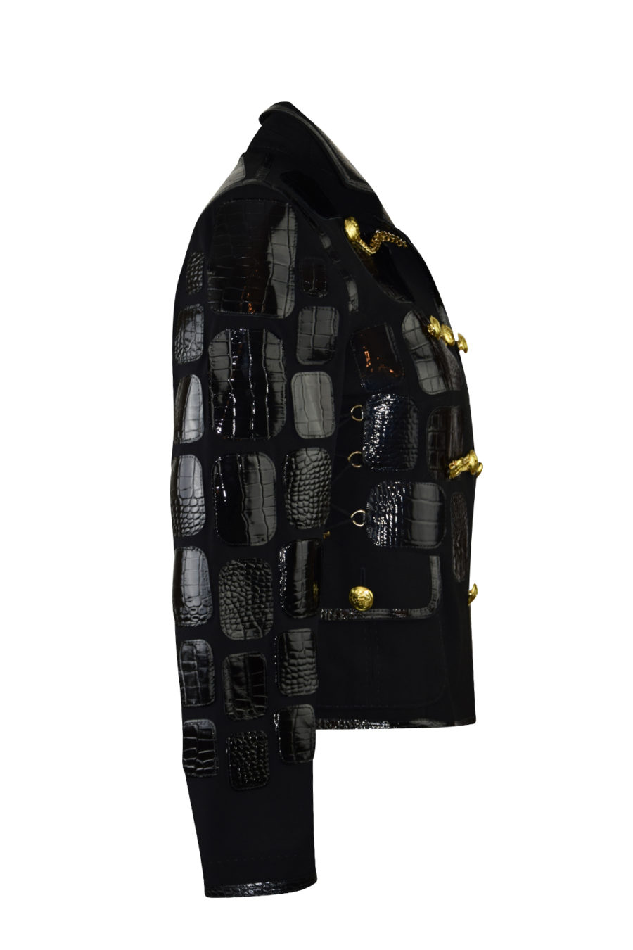 Jacke mit Lederpatches in Kroko-Optik, Kettapplikationen und Zierknöpfen, Kragen, Georgette & Jersey, Multisize