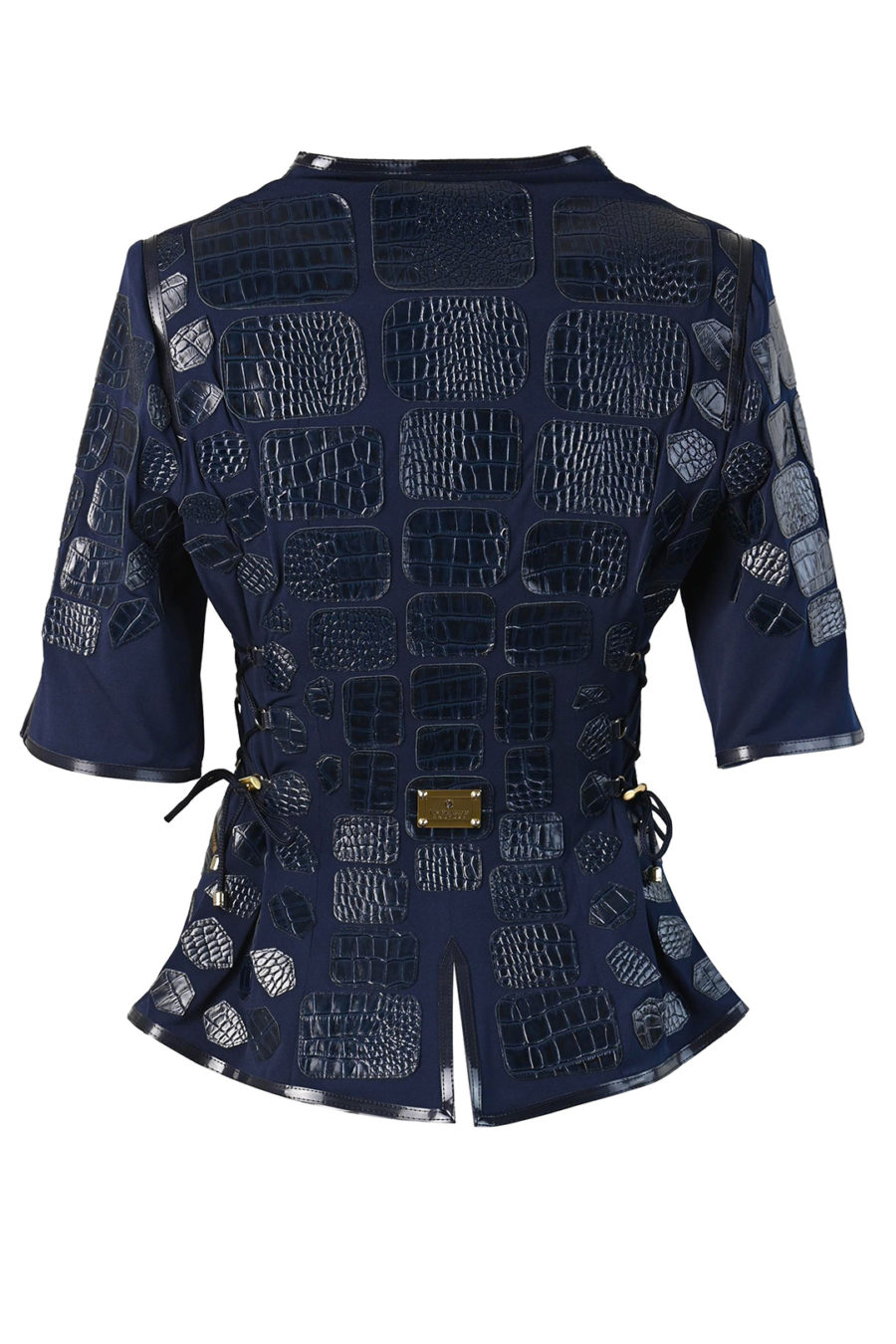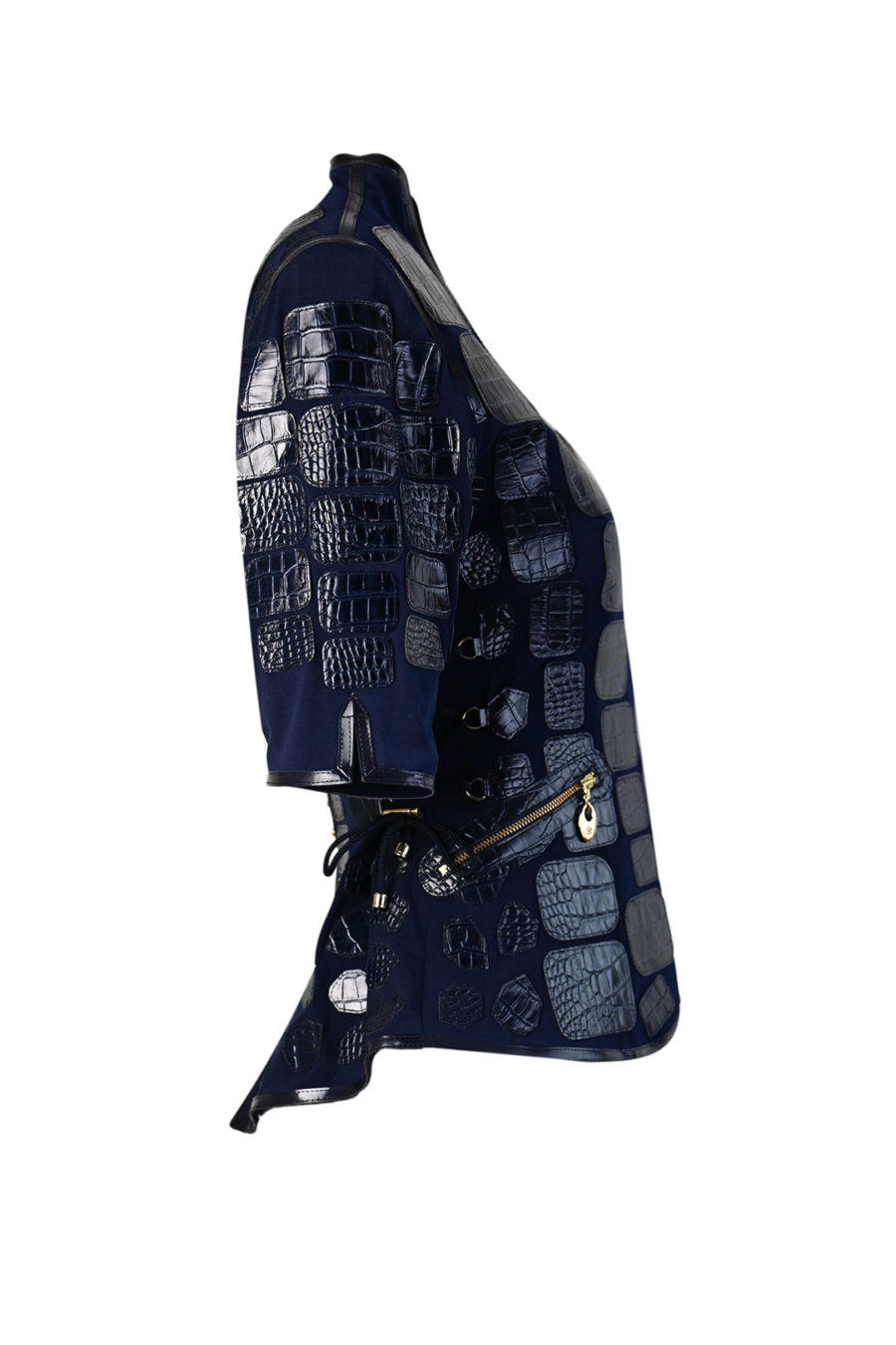 Jacke mit Lederpatches in Kroko-Optik, Zipper-Taschen, angeschnittenem Stehkragen und Multisize-Schnürung, Kurzarm