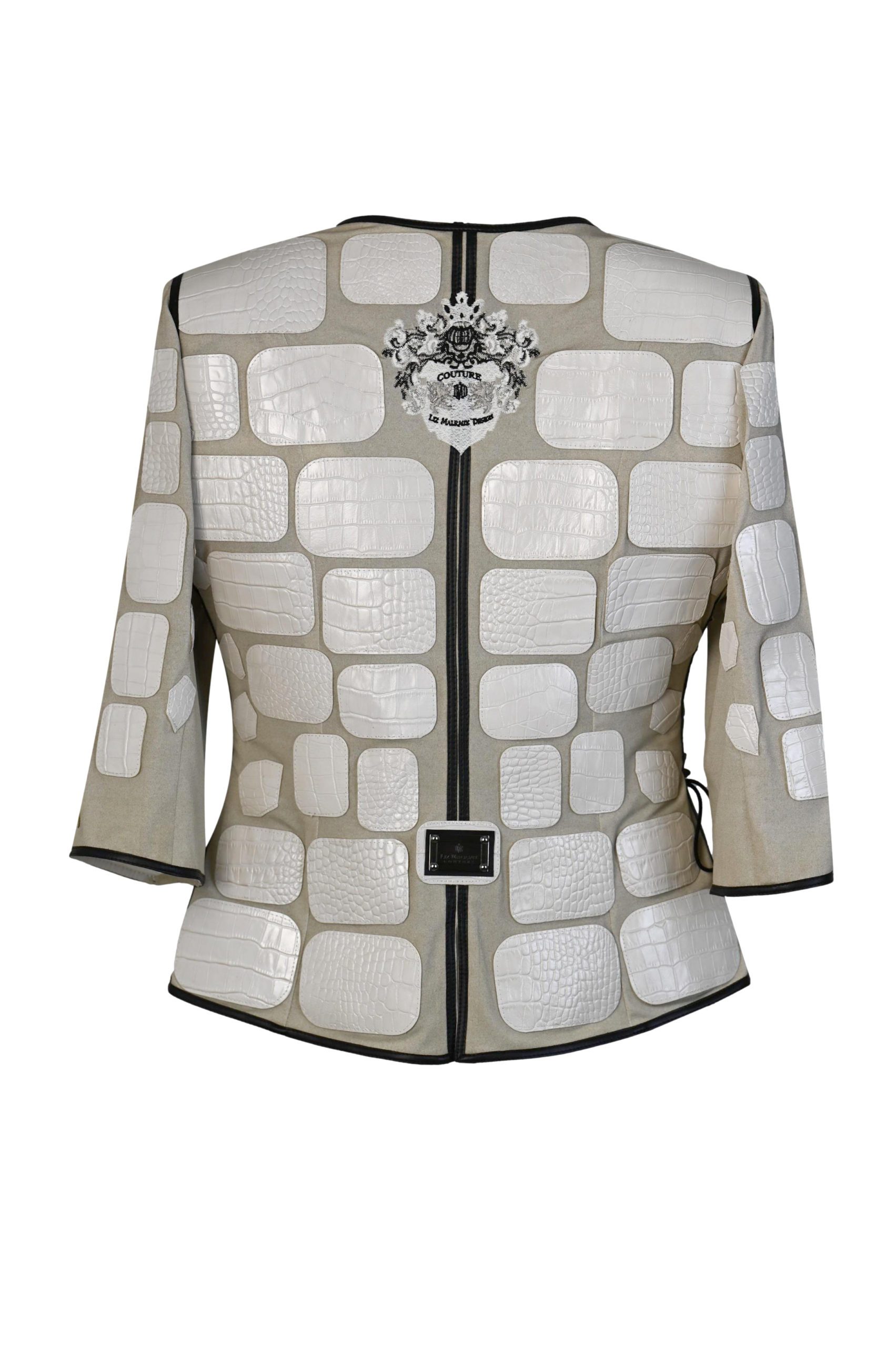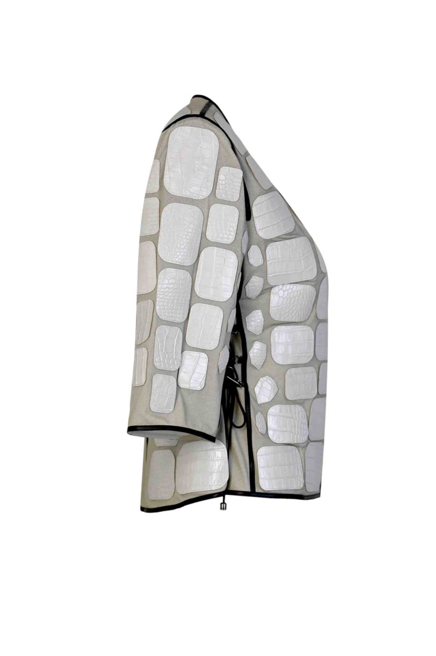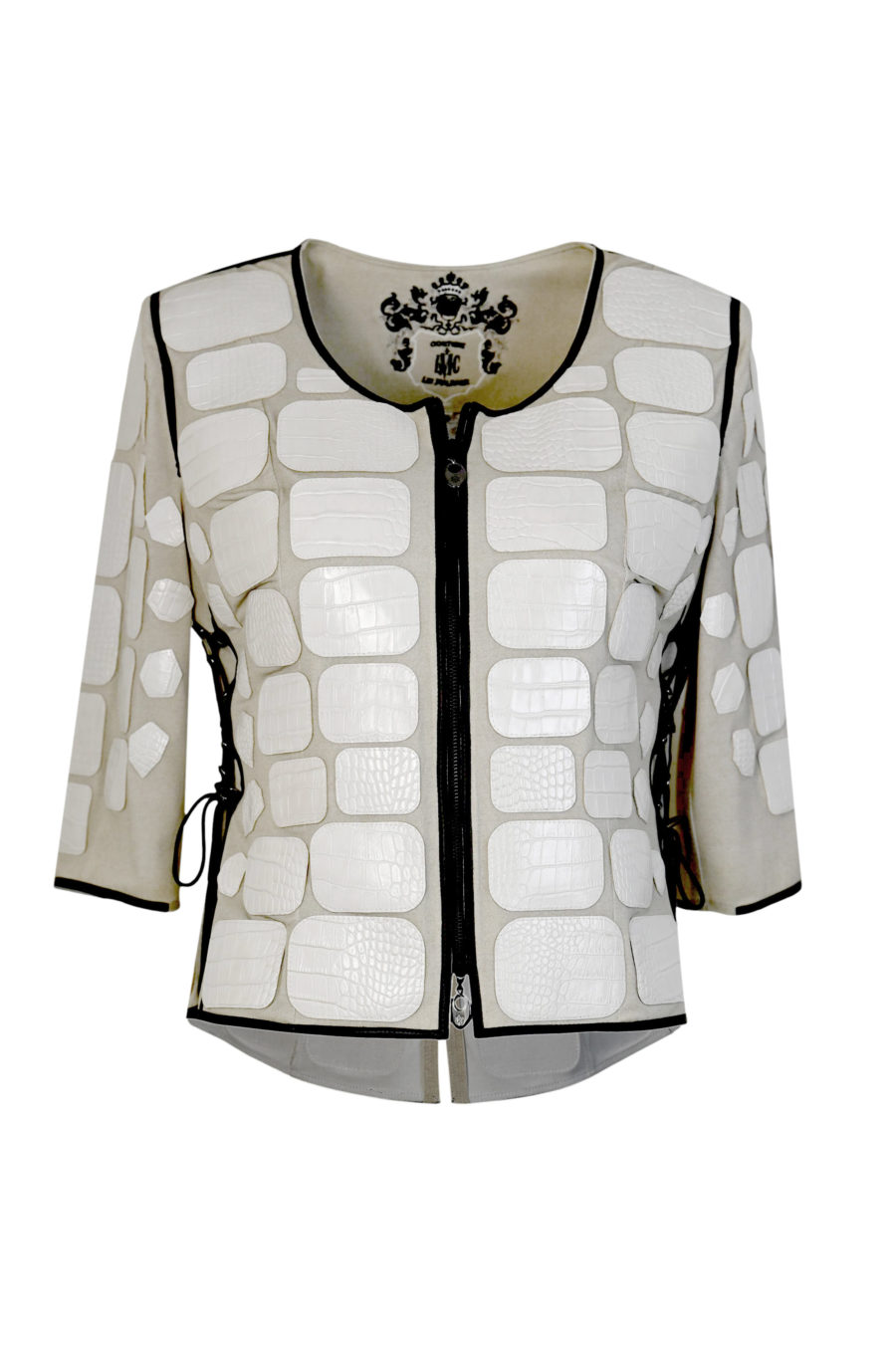 Jacke mit Lederpatches in Krokoleder-Optik, Zipper-Verschluss, Rundhalsausschnitt, 3/4-Ärmeln & Multisize-Schnürung