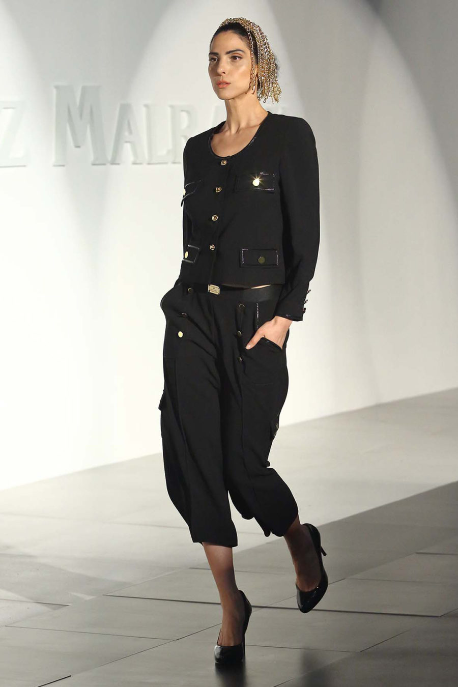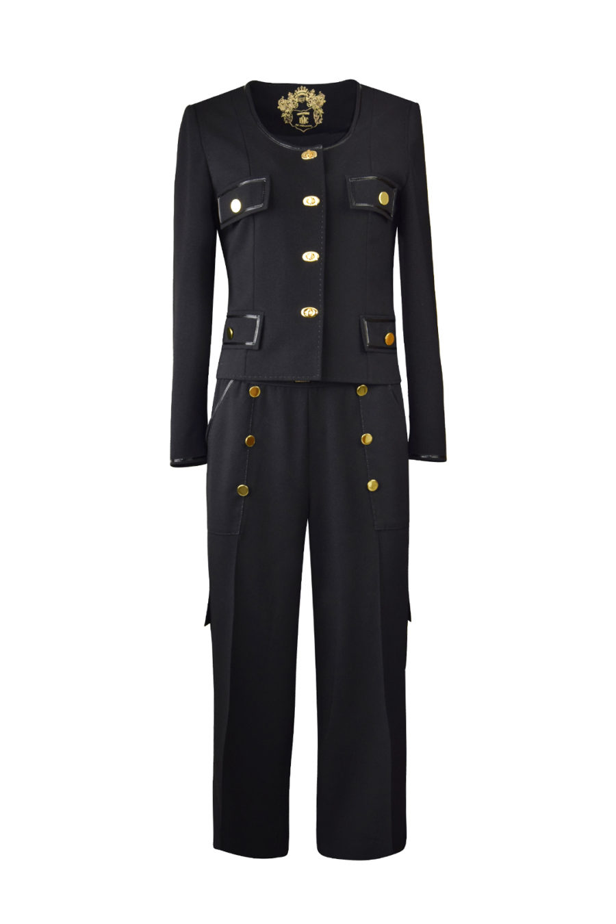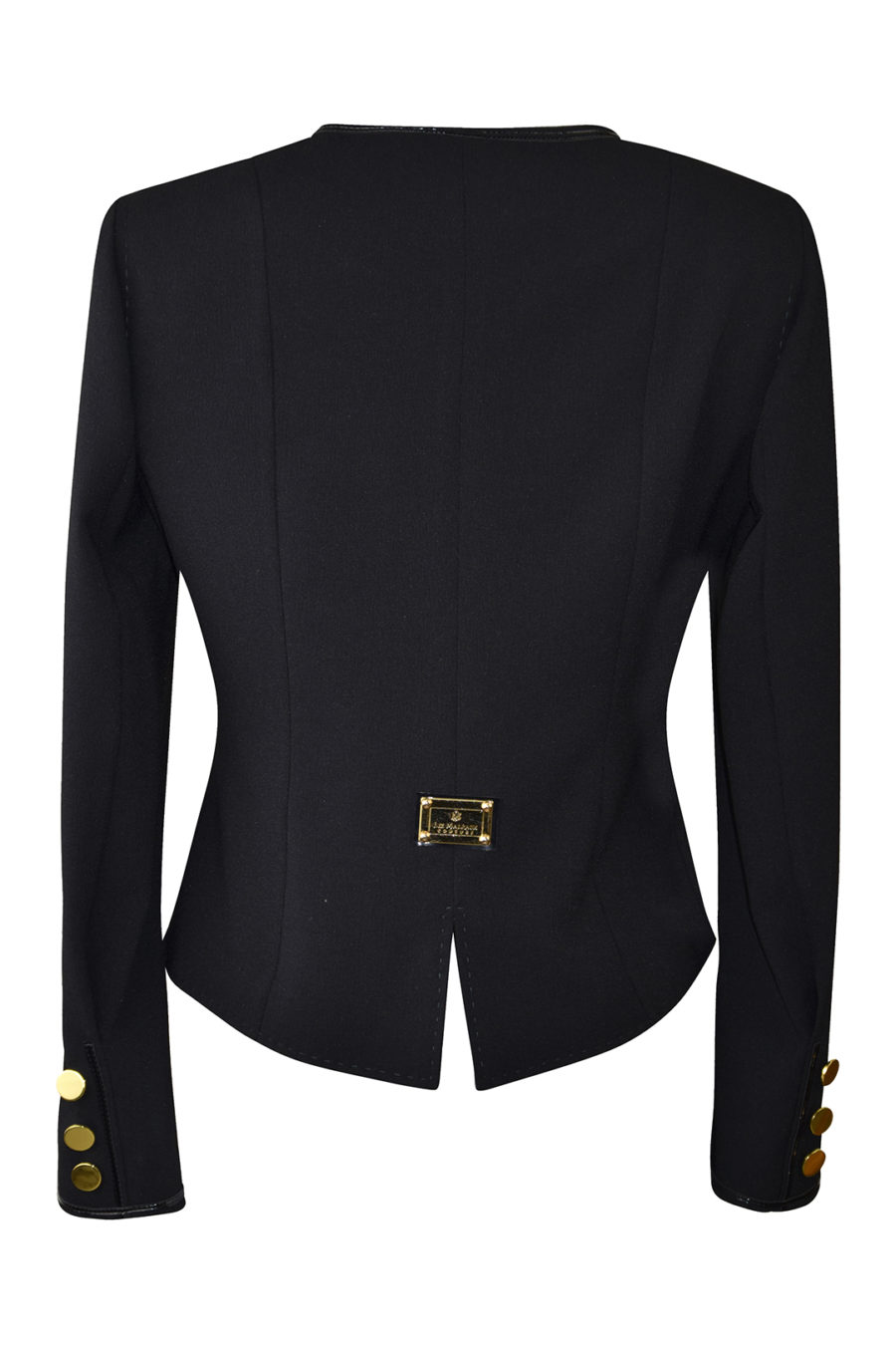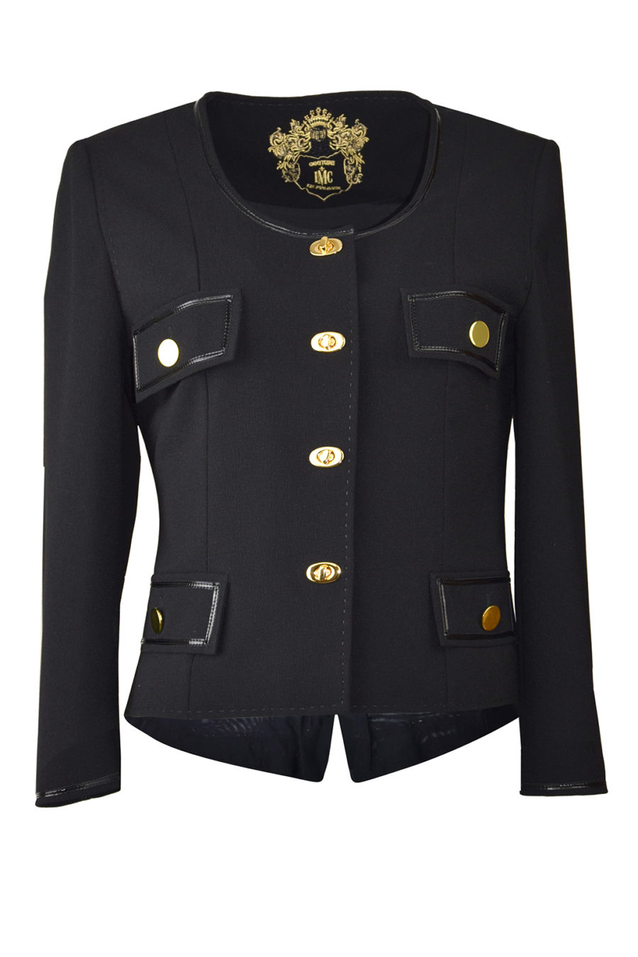 Jacke mit Pattentaschen, Goldknöpfen und Lackkontrasten in schwarz, Langarm