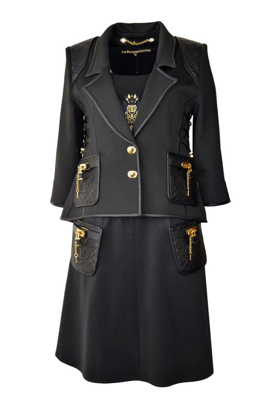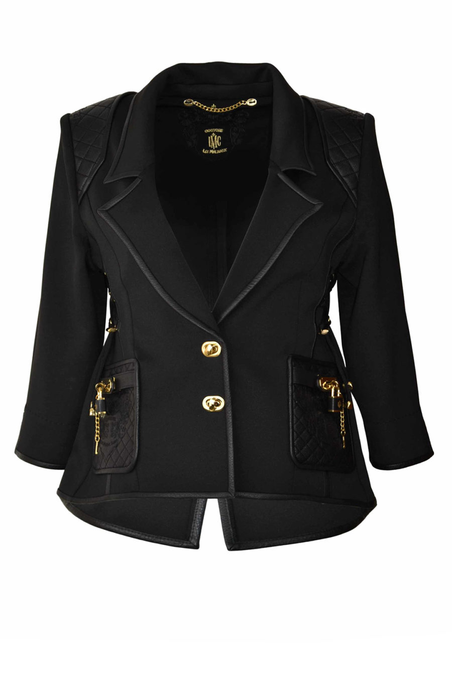Jacke mit Rever und mit geprägt gestickten Ledertaschen und Kontrasten