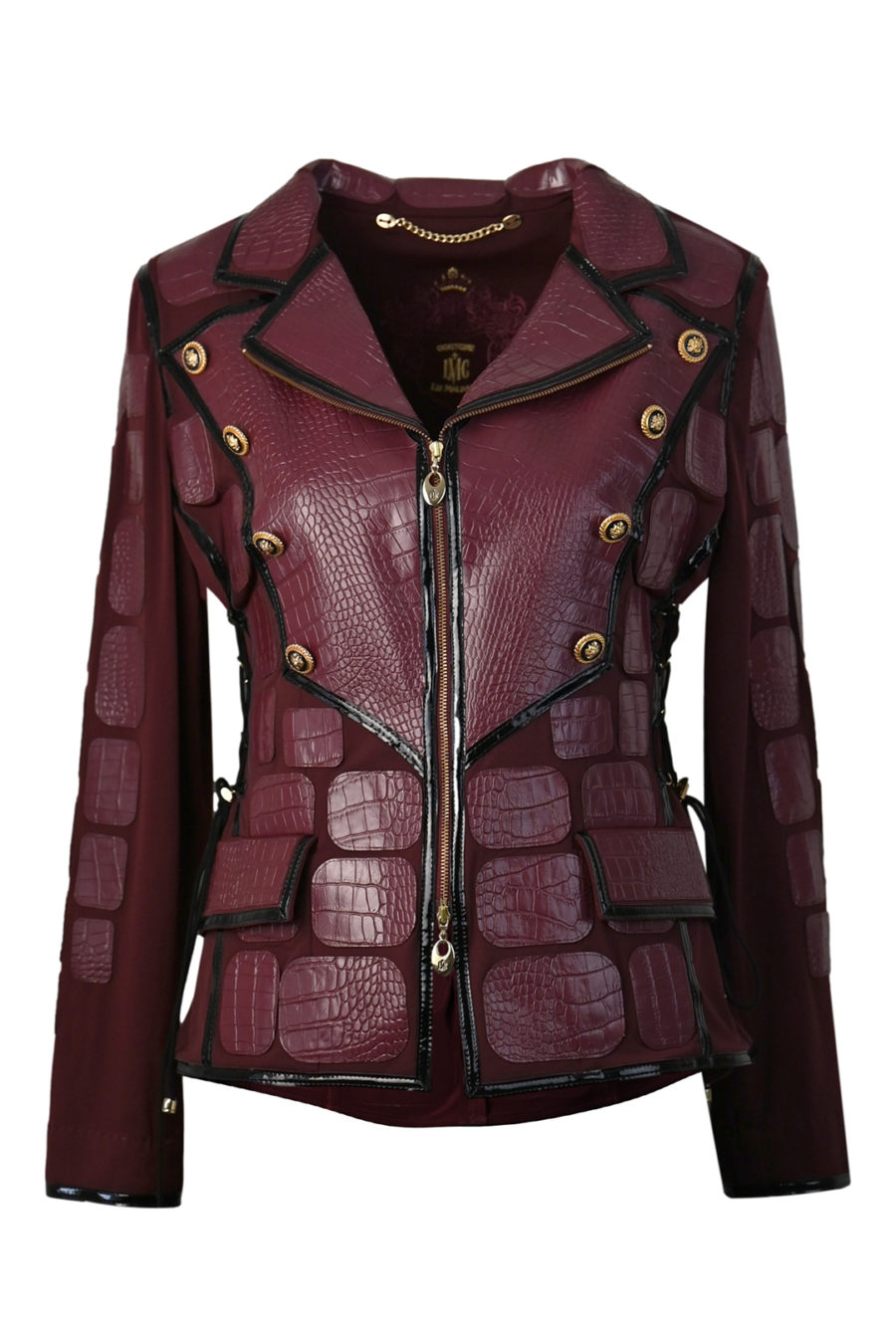 Jacke mit Revers und Vorderteil in Kroko-Optik, schwarzen Lackkontrasten, 8 Zierknöpfen, Pattentaschen, Multisize
