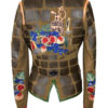 Die Couturejacke ist aus pflegeleichtem Jersey, mit Krokopatches appliziert und mit einem von Liz Malraux entwickelten Stickmotiv 12-farbig bestickt.
