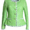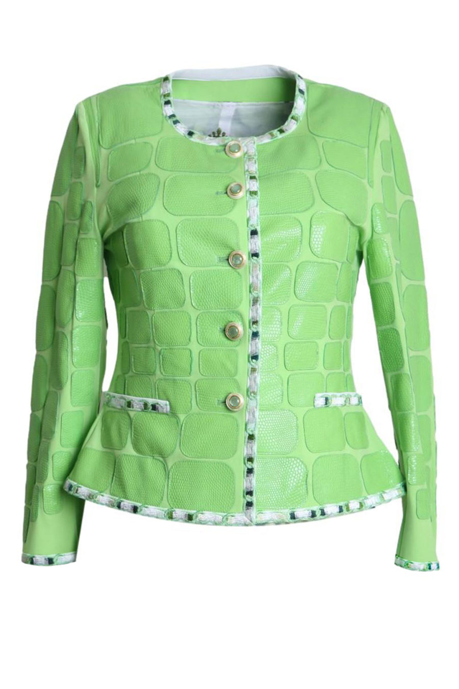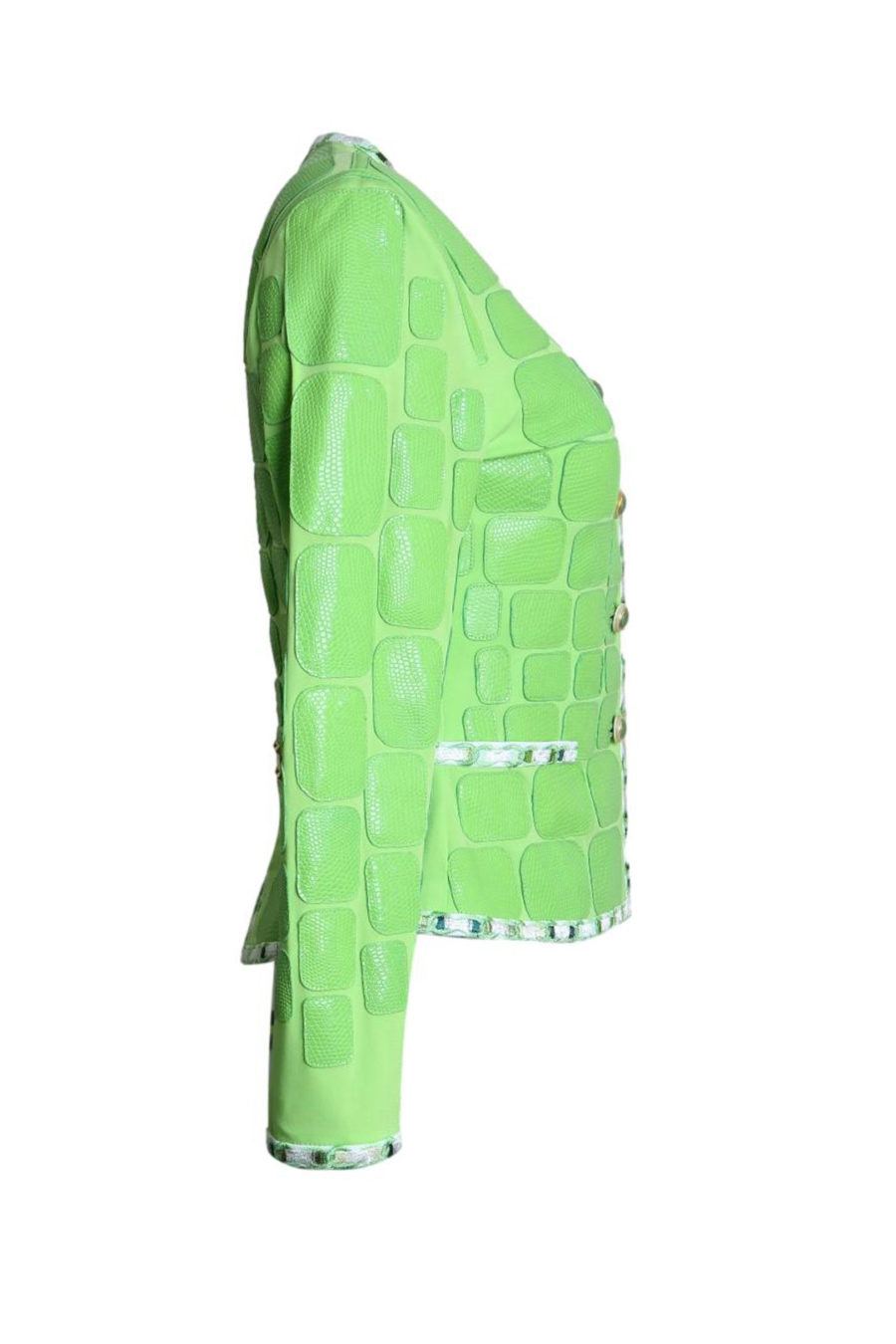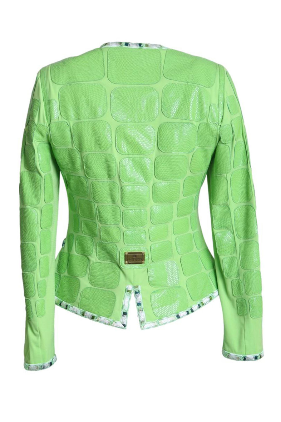 Jacke mit gestickter Bordüre, applitziert mit Lederpatches in Salamander-Optik, Langarm