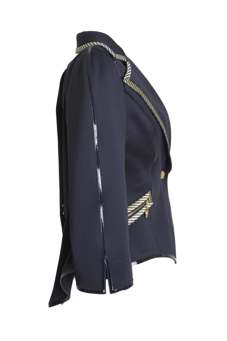 Jacke “Grand Prix”mit “classsic-embroidery”, asymmetrisch, marine-gelb, Jersey