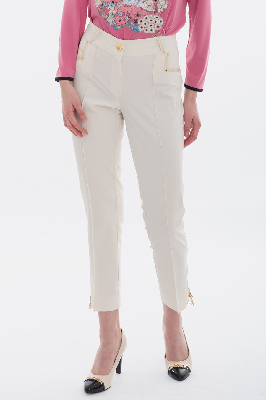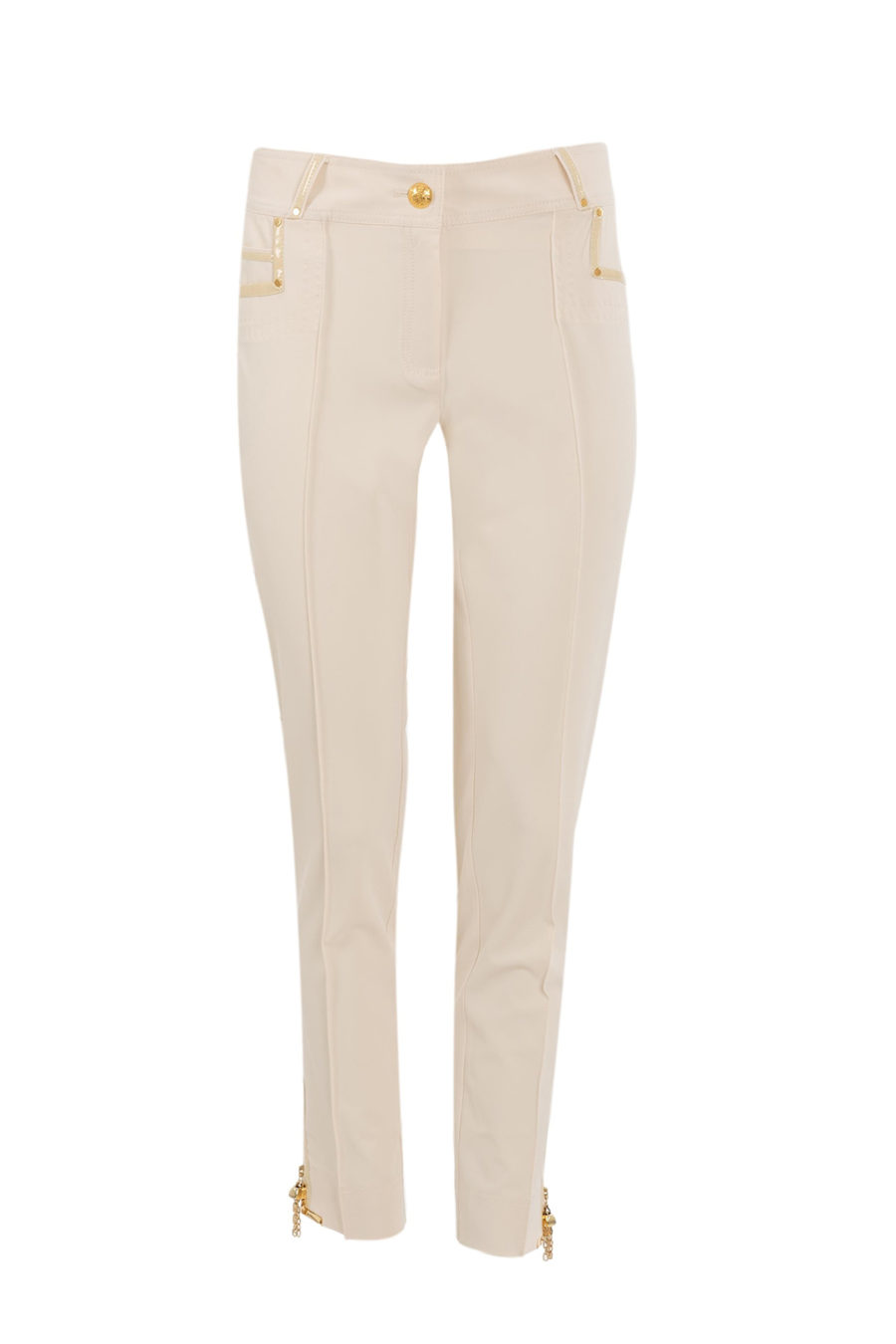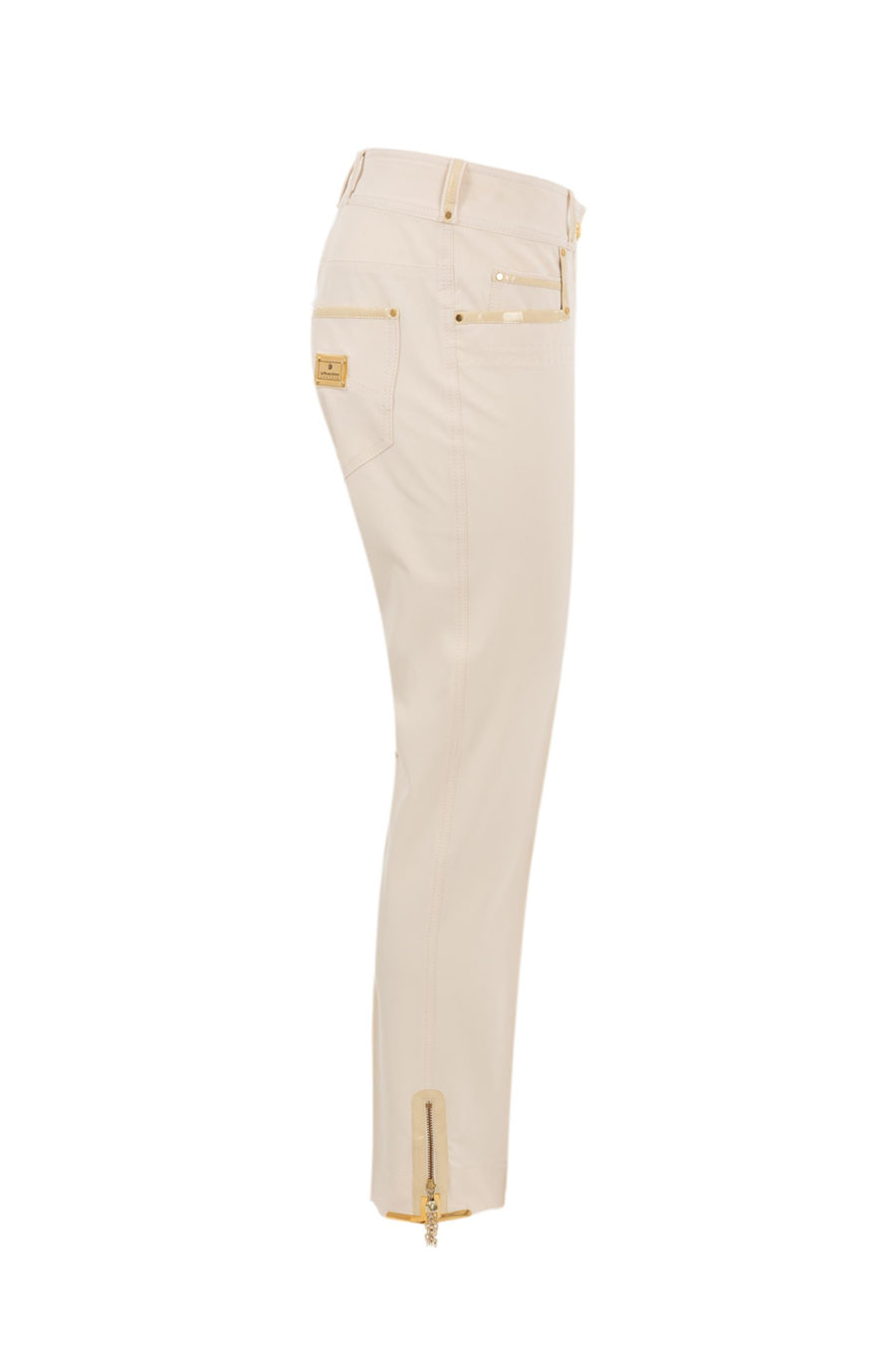 Hose in Jeansschnitt mit Goldecken und Zipp am Saum, Lackapplikationen, LMC-Logo, Mikrofaser