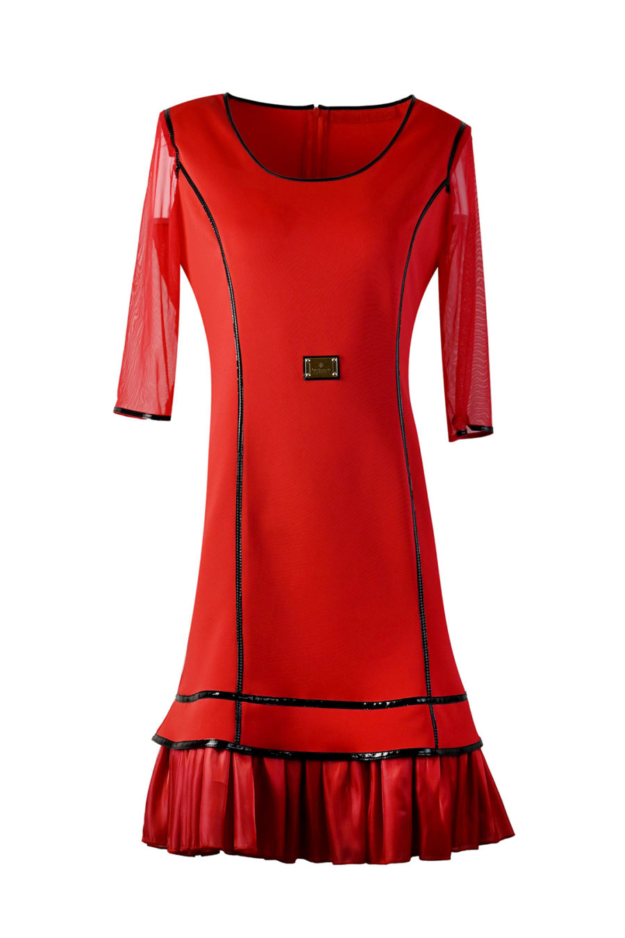 Kleid aus Double-Jersey mit dreifachen Chiffon-Volants am Saum und 3/4-langen Meshärmeln. Verziert mit Lackkontrasten und dem LMC-Logo, ist das Kleid tailliert und elastisch. Es ist das ganze Jahr über tragbar, während die luftigen Ärmel einen Hauch von Transparenz verleihen. Die Lackkontraste unterstreichen die Silhouette.