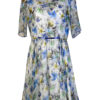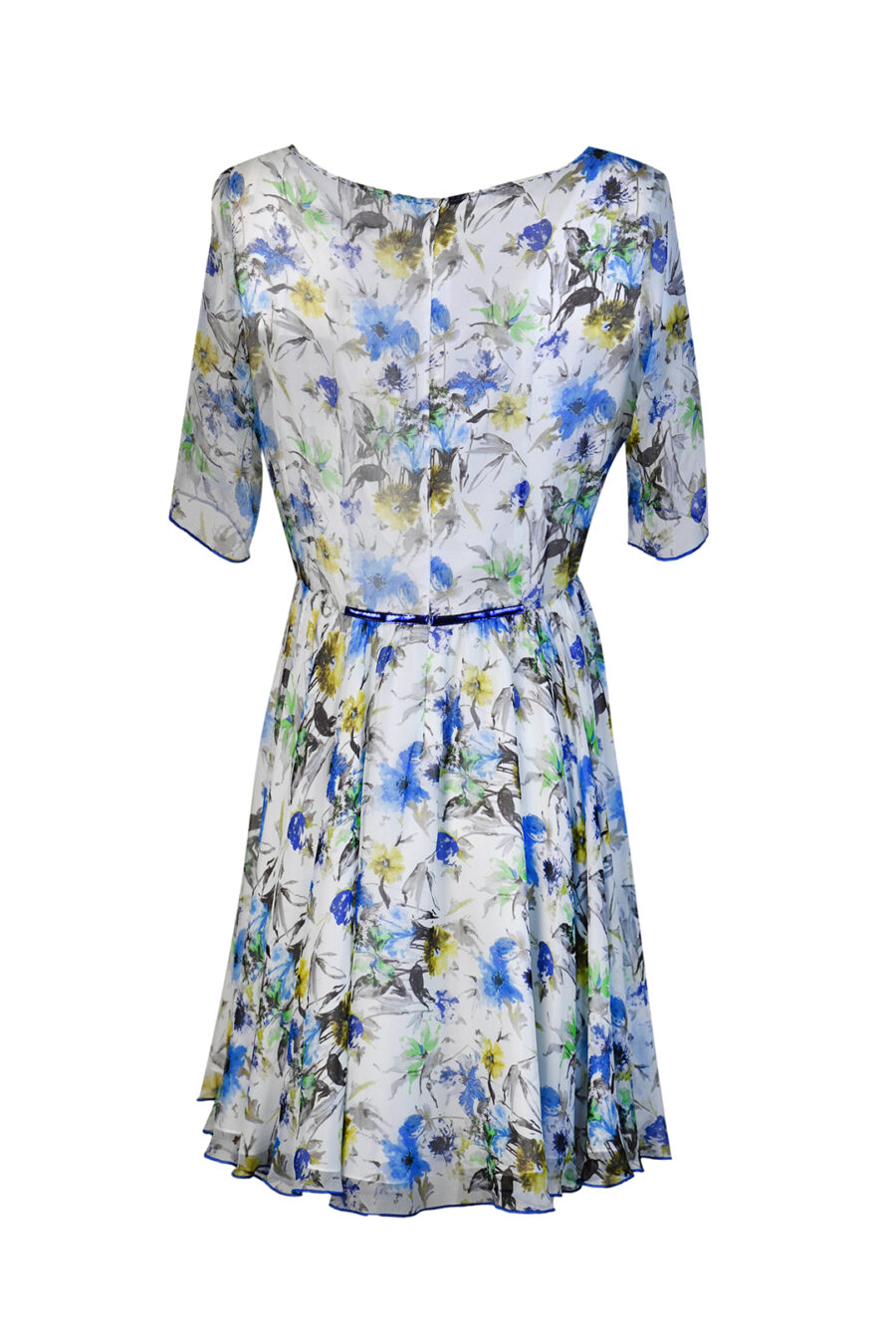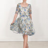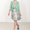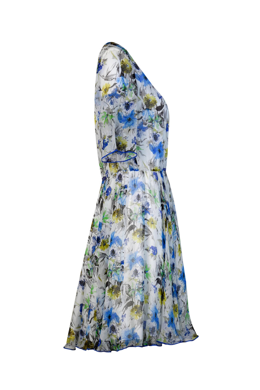 Kleid aus reiner Seide mit glockig geschnittenem Rockteil, verziert mit Lackstreifen, Kurzarm