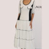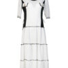 Kleid aus weißem Crash-Stoff mit schwarzen Kontrasten, Volants und Pattentaschen Menge