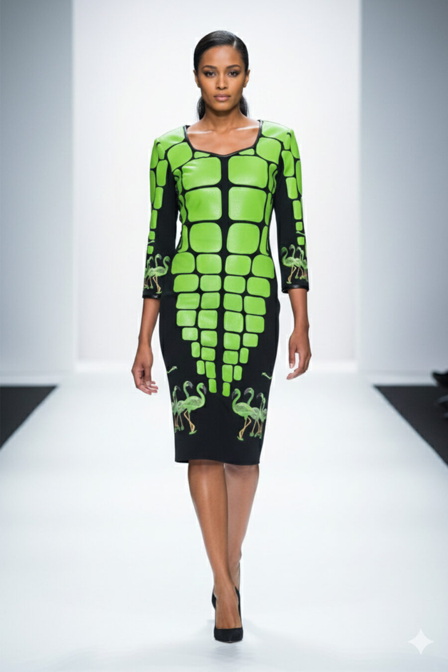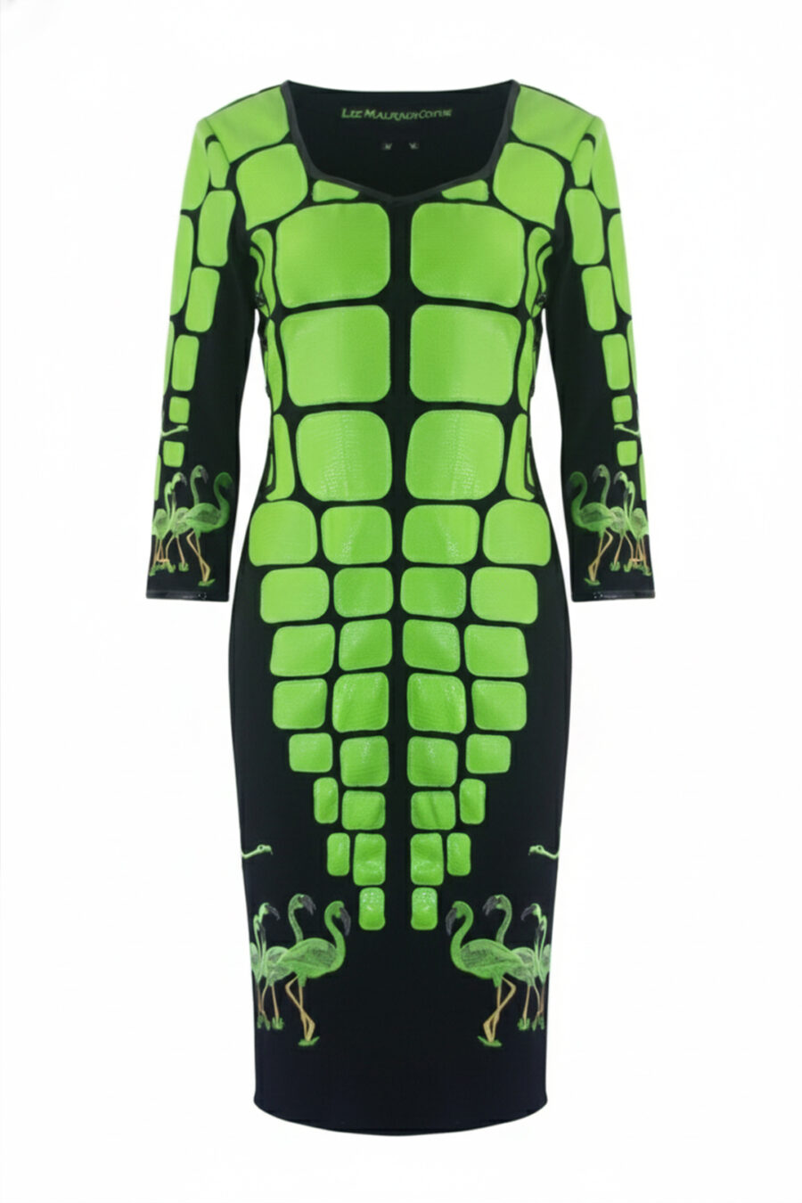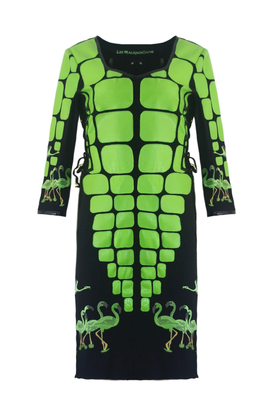 Kleid mit “flamingo-embroidery”, 4 Motive, Lederpatches in Salamander-Optik