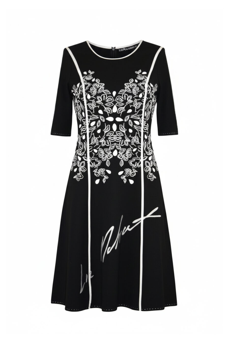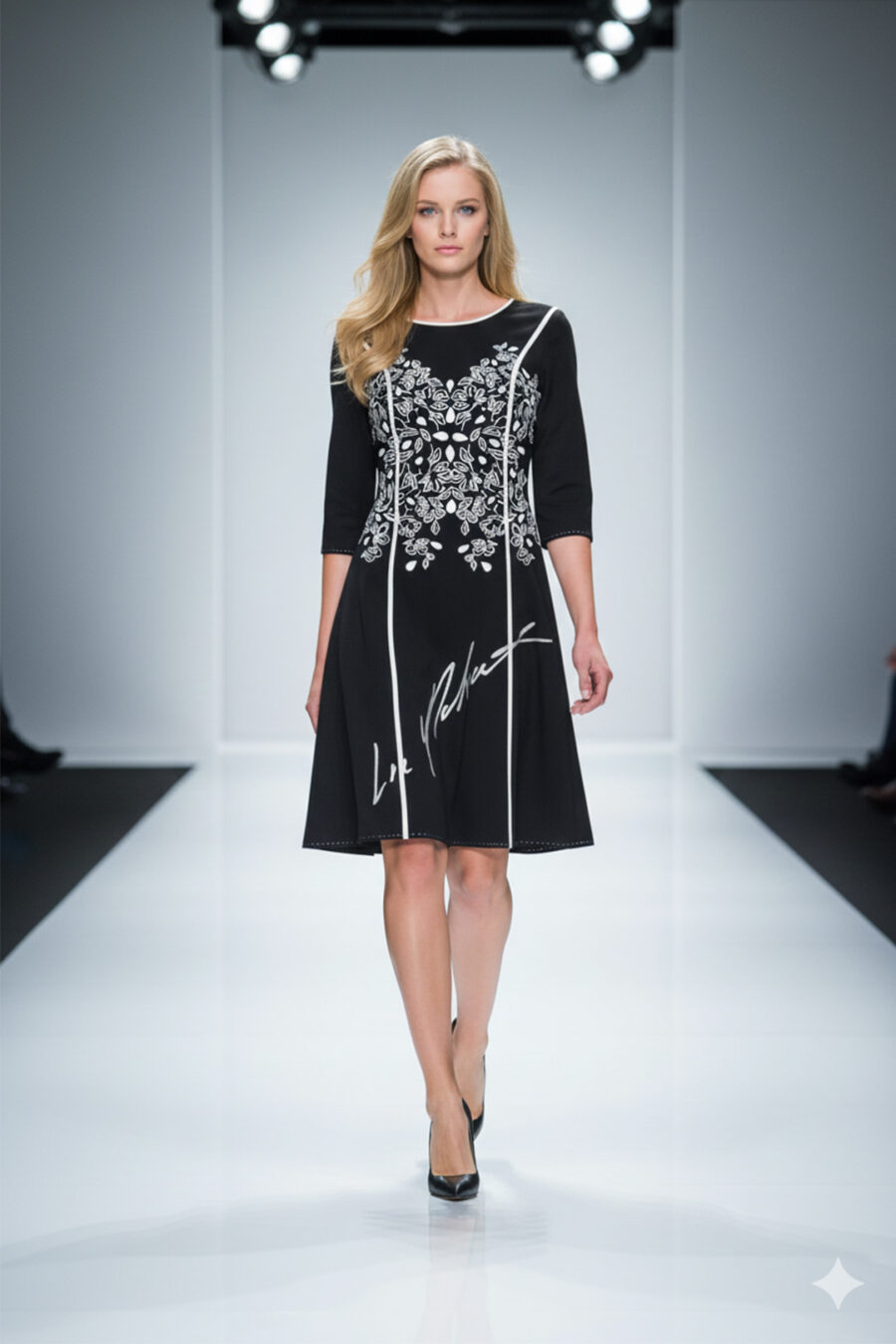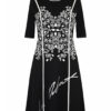 Kleid, Doublejersey, mit tiny-leaf-embroidery, Mini-Krokopatches und Lackkontrasten in schwarz