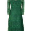 Das Spitzenkleid von Liz Malraux wurde aus elastischer Spitze gefertigt, wobei bewusst an den Ärmeln und am Saum semitransparente Bereiche freigelassen wurden. Ein anliegendes Bustier-Unterkleid rundet die Kreation ab.