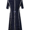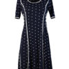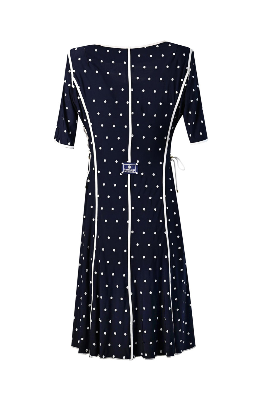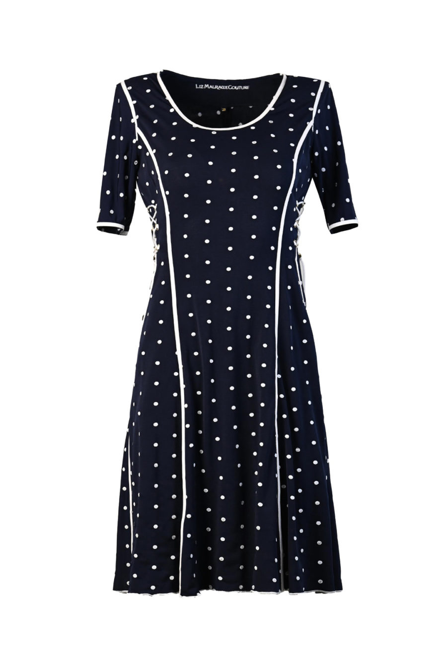 Kleid mit allover “Tupfen-Metrage-embroidery”, auf Single-Jersey gestickt, mit Lackkontrasten und Multisize-Schnürung, mit Jersey-Futter unterlegt