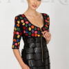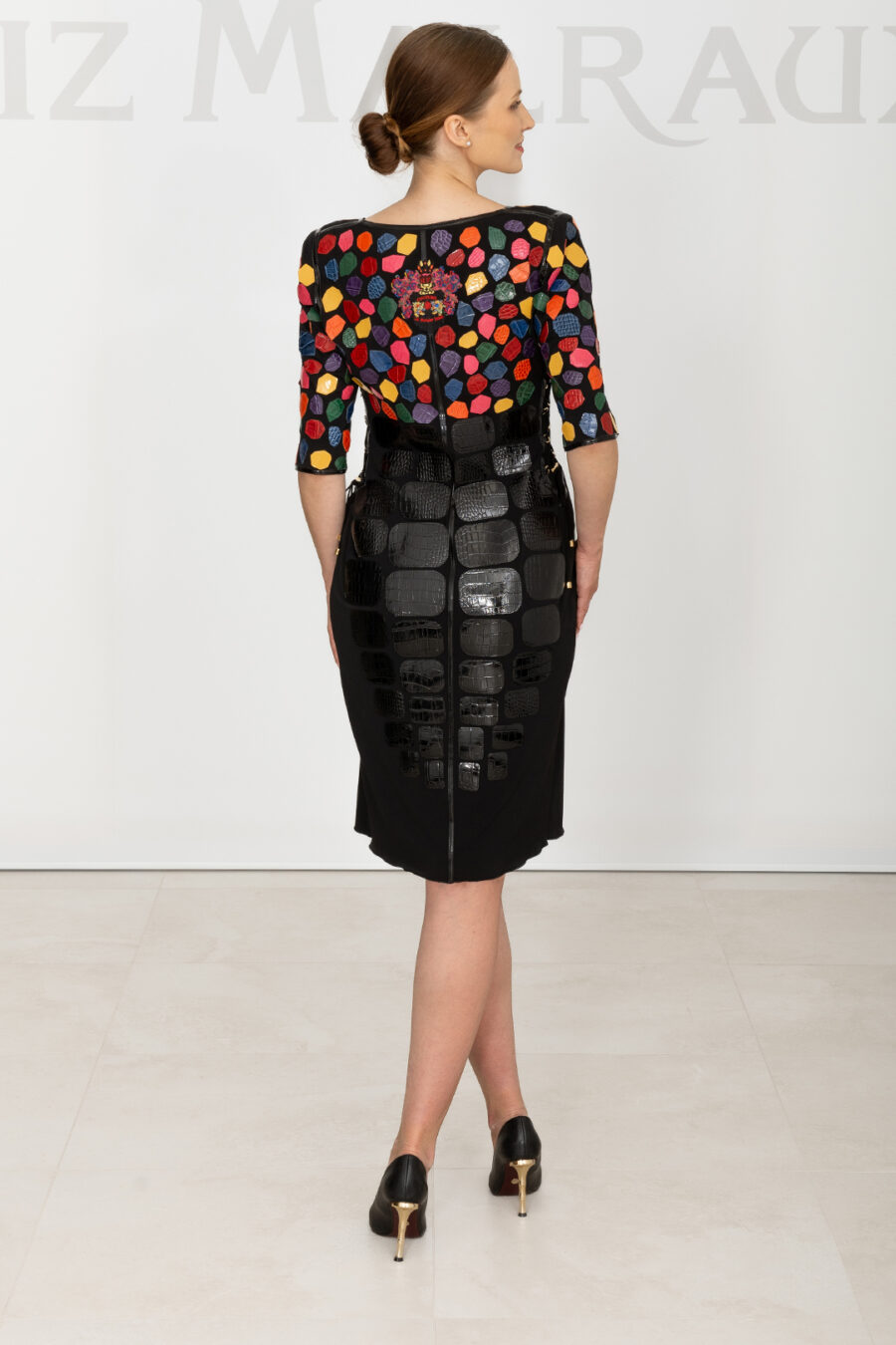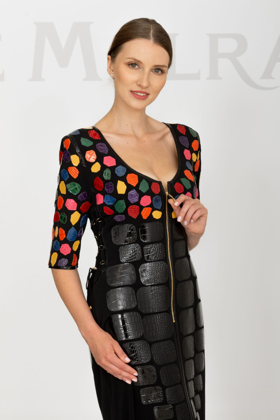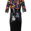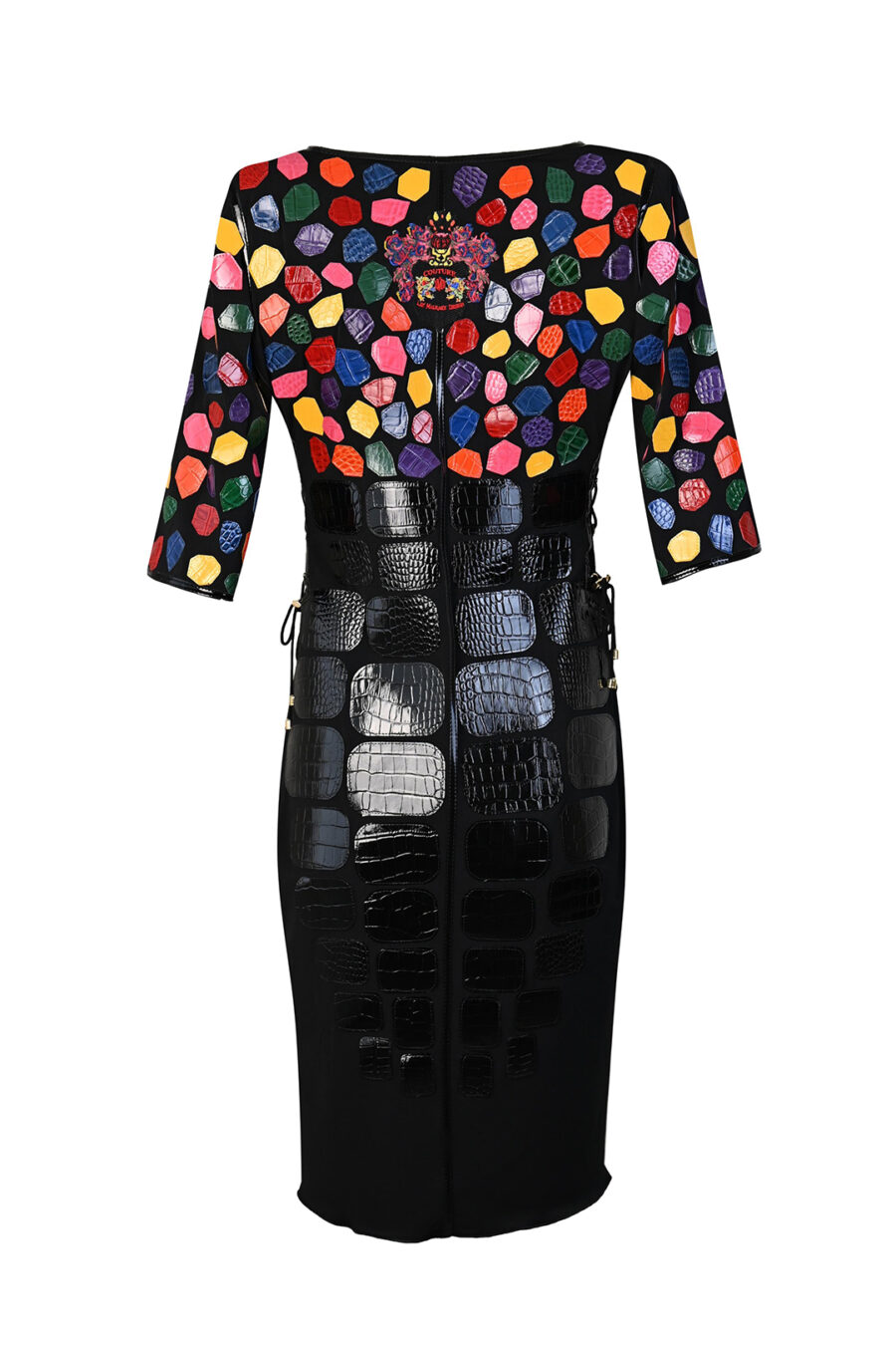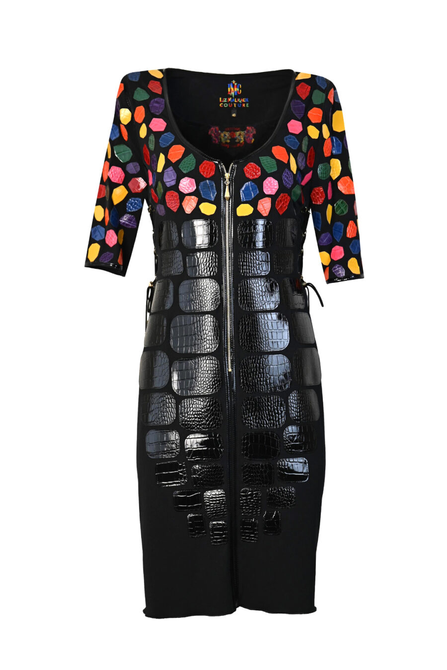 Kleid mit Diamant- Lederpatches in Multicolor 180 Stk, und klasischen Patches in schwarz, mit 3/4 Ärmeln Menge