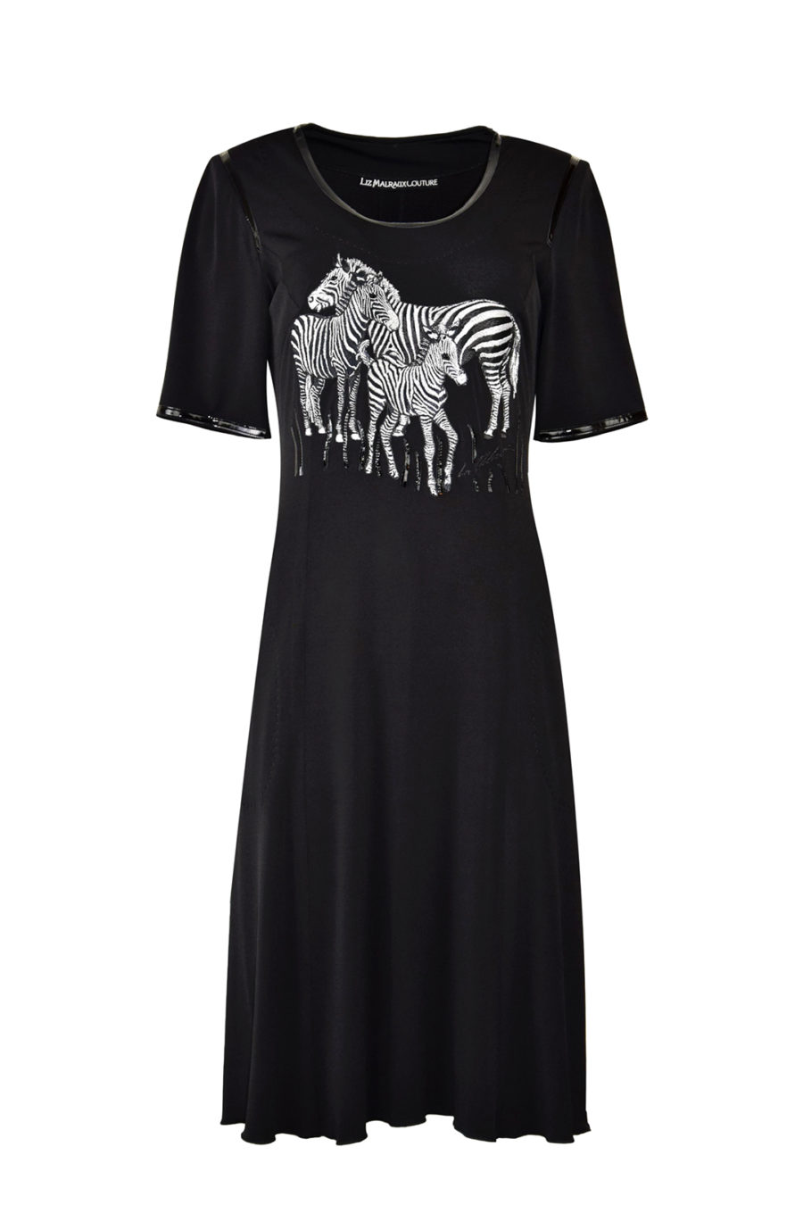 Kleid mit „Zebra – embroidery“ auf schwarzen Jersey, Kurzarm