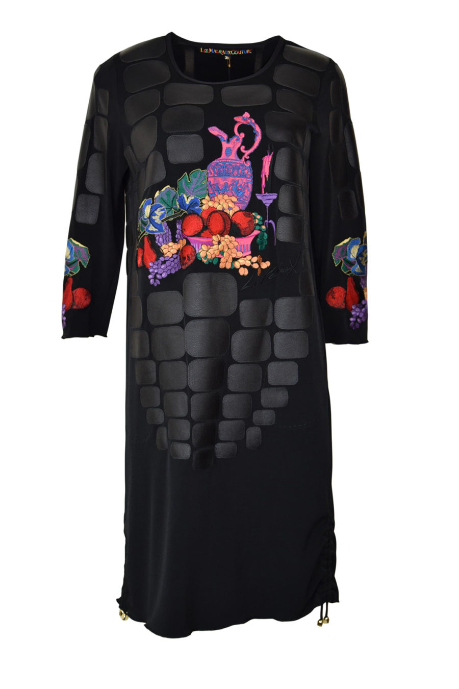 Kleid mit “still-life-embroidery”,-4 Motive, Nappapatches auf Jersey, 7/8 Arm, Kordelzüge am Saum