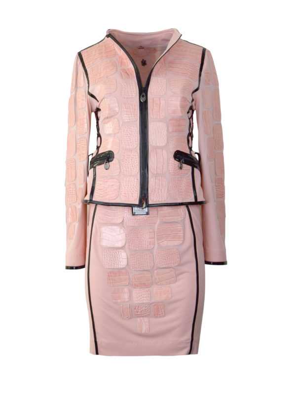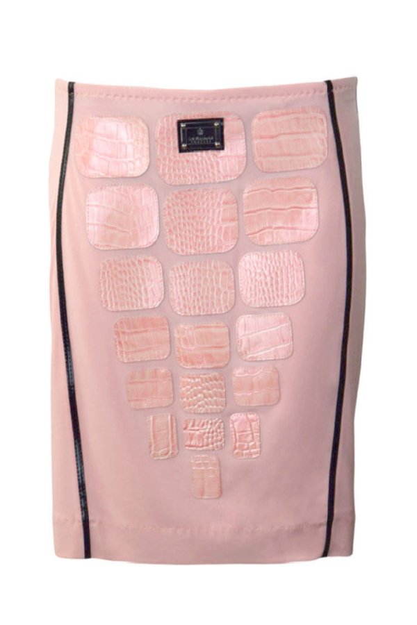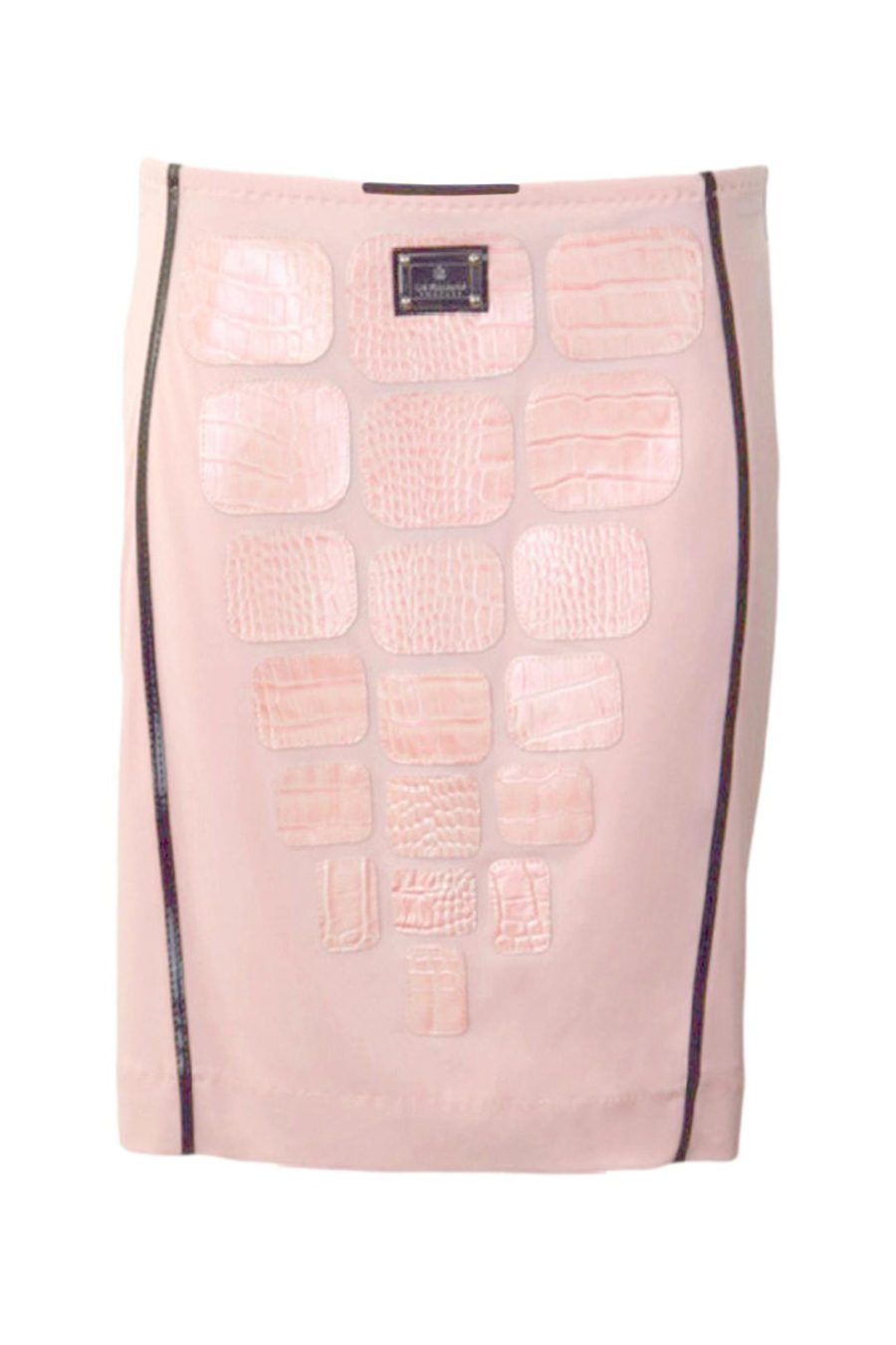 Minirock aus Jersey mit Lederpatches in Kroko-Optik und LMC-Logo