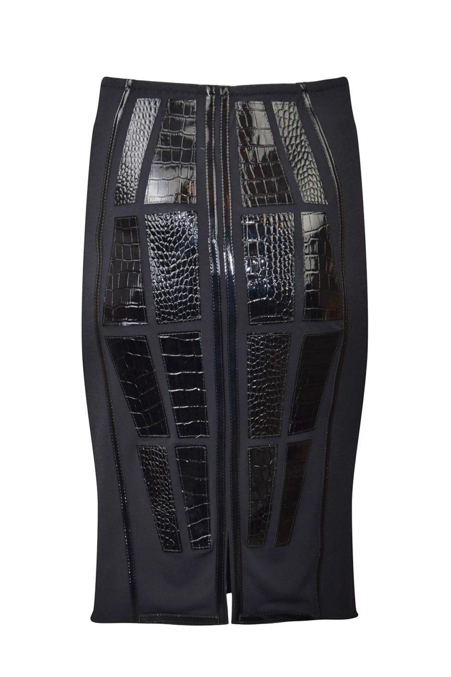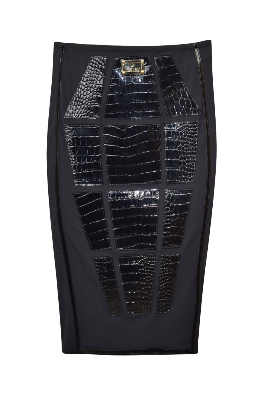 Rock mit Corsage-Patches in Kroko-Optik und LMC-Logo