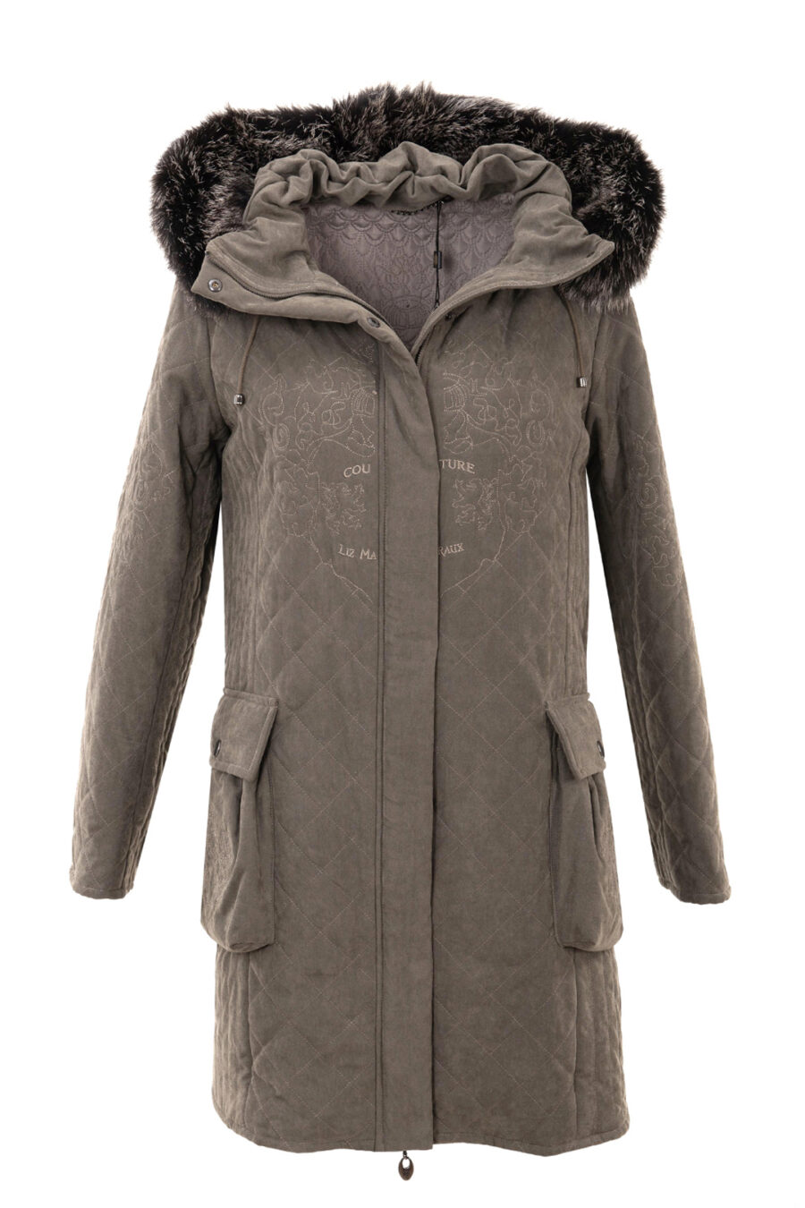 Kultparka mit XL-Fuchsverbrämung, Trekkingtaschen und eingearbeiteter Sicherheitstasche