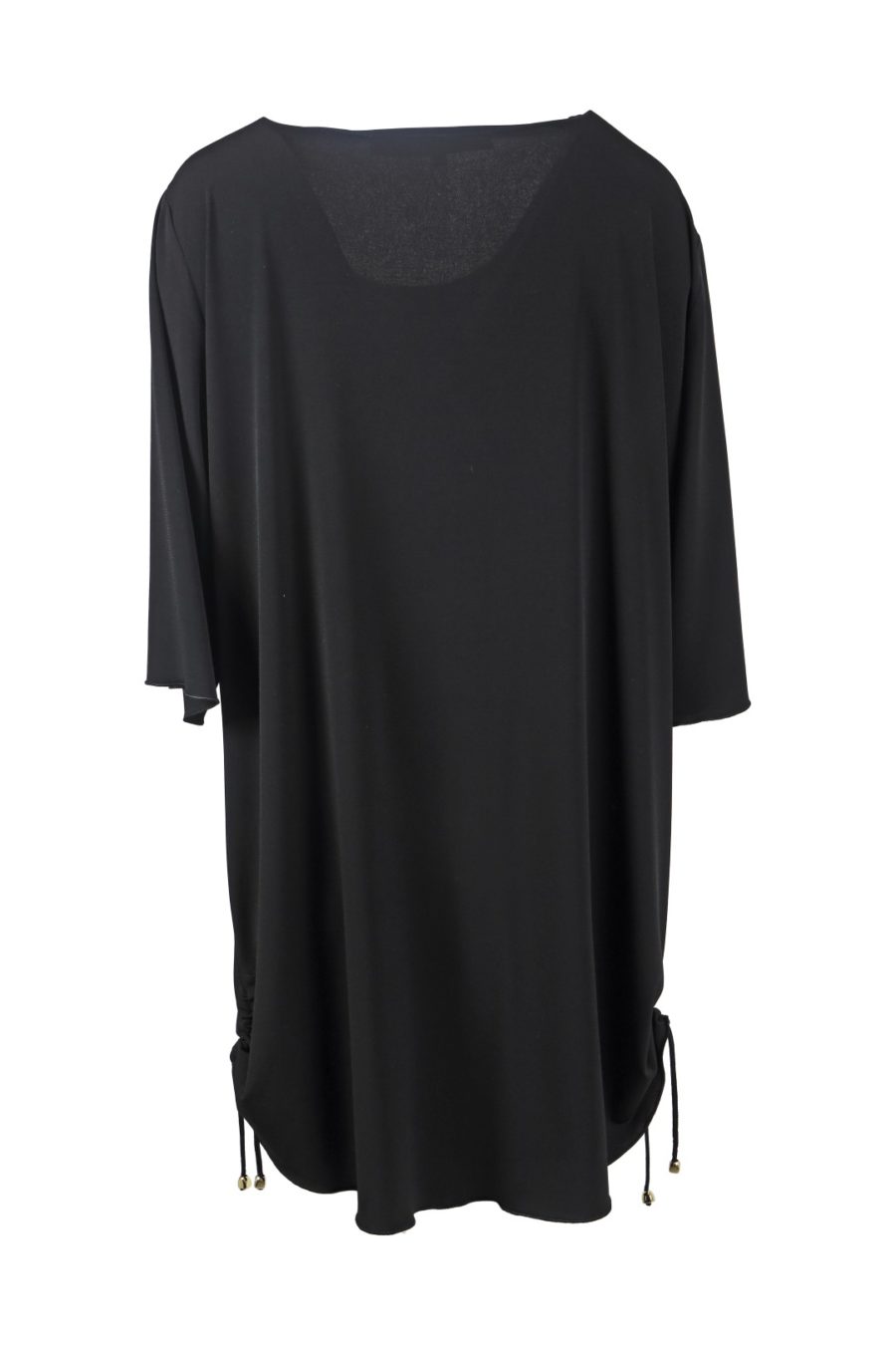 Das Shirt verfügt über seitliche Kordelzüge im Saumbereich, die eine Längenkorrektur ermöglichen und gleichzeitig eine modische Raffung entstehen lassen.