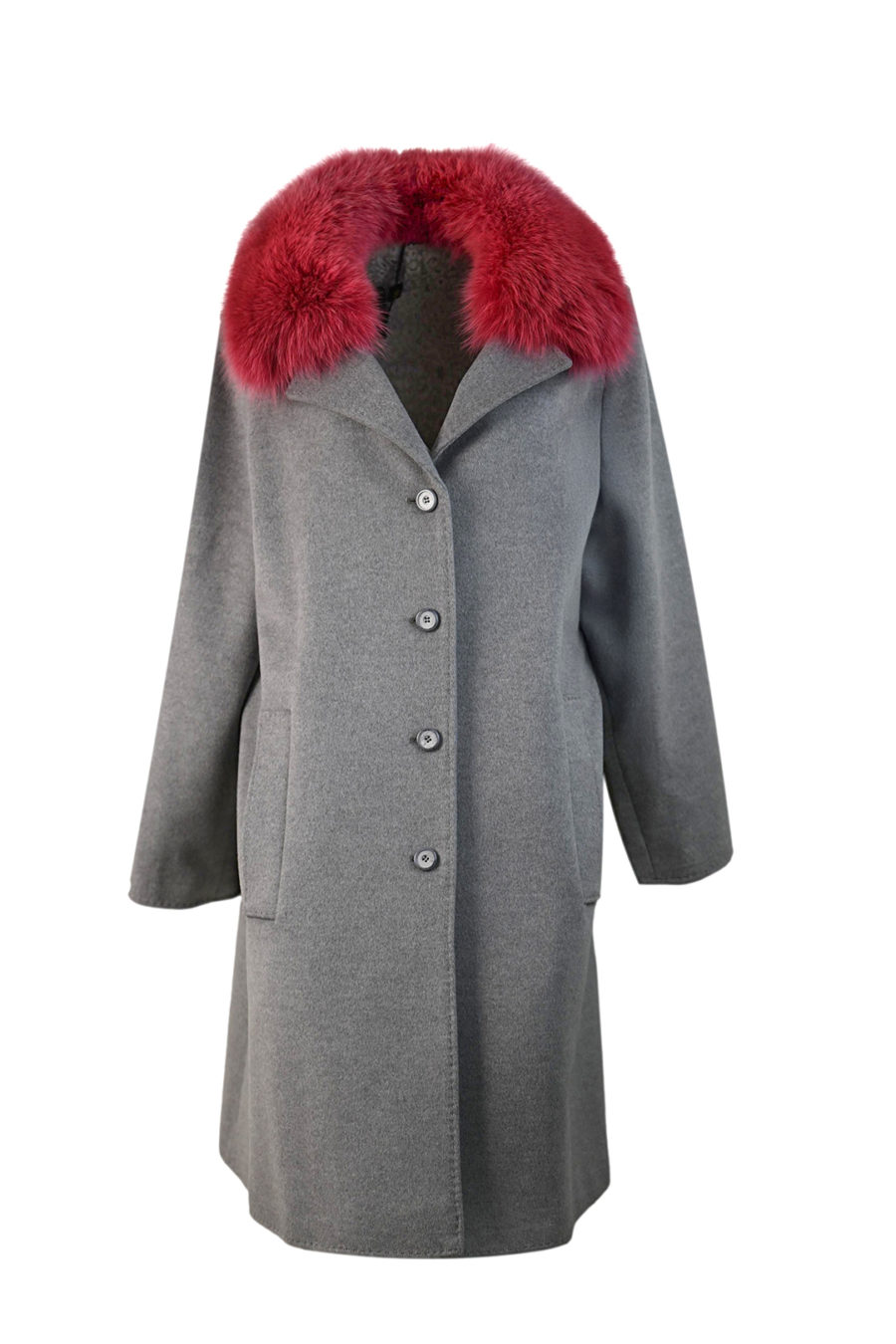 Designer Farbbezeichnung Silber Grau, kombiniert mit dem eleganten Fuchskragen in Malve