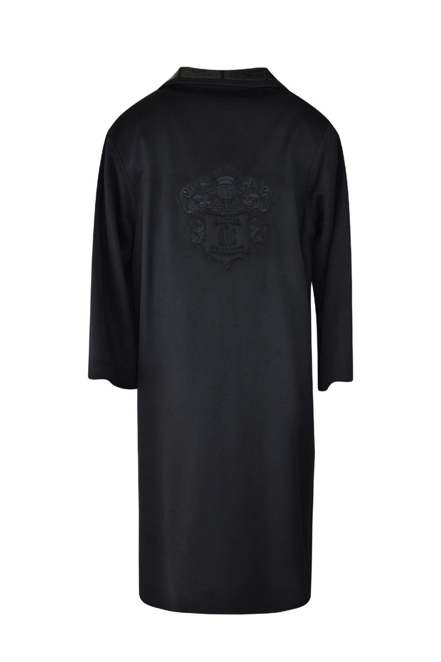 Mantel aus 100% Kaschmir mit Revers aus Leder in Kroko-Optik, Goldknöpfen, mit Jaquard Futter und Sicherheitstasche