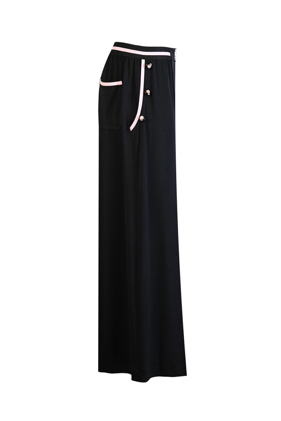 Marlene-Hose aus Jersey mit 6 Zierknöpfen, Kontrasten, 4 Taschen und zweifarbigen elastischen Bund