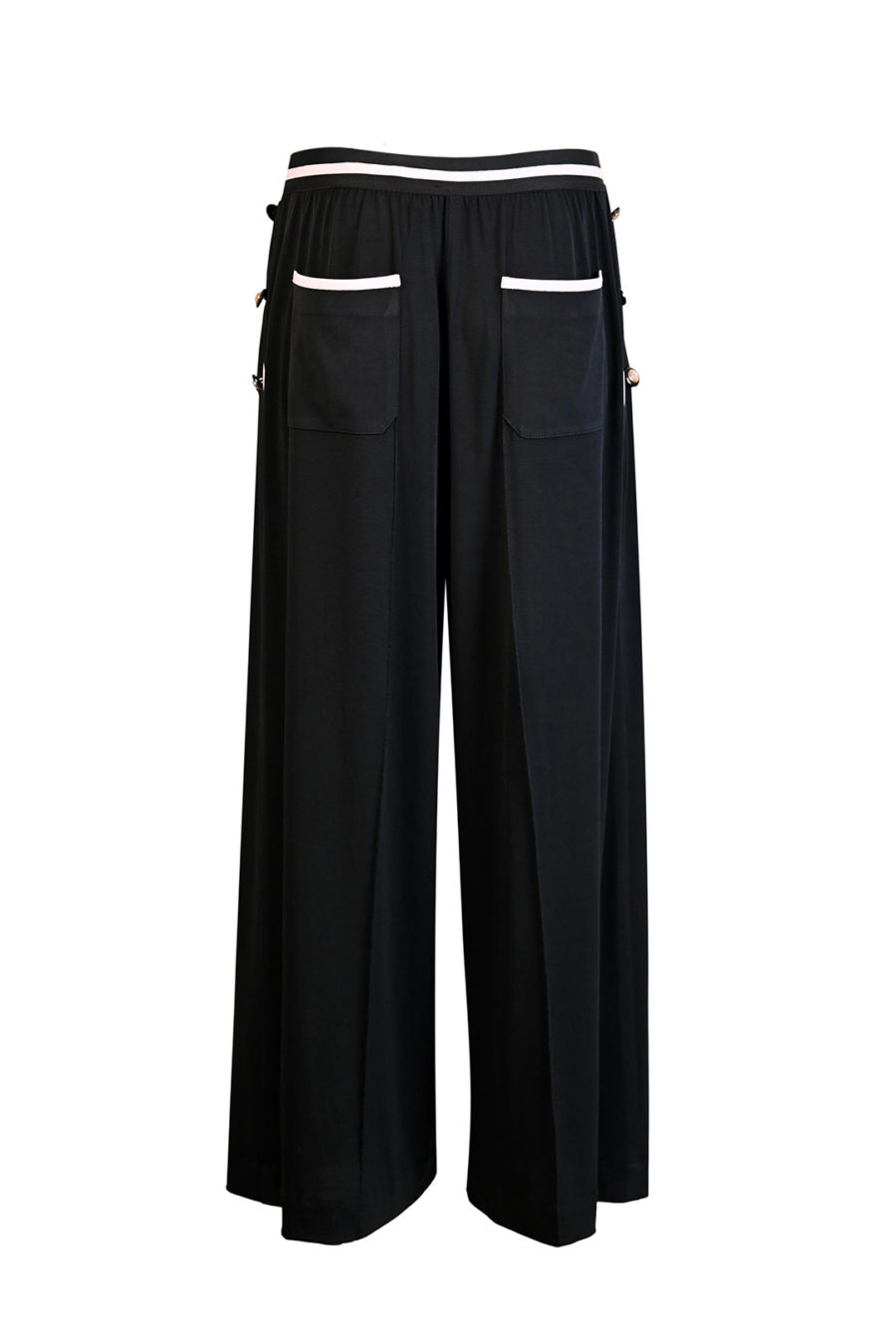 Marlene-Hose aus Jersey mit 6 Zierknöpfen, Kontrasten, 4 Taschen und zweifarbigen elastischen Bund Menge