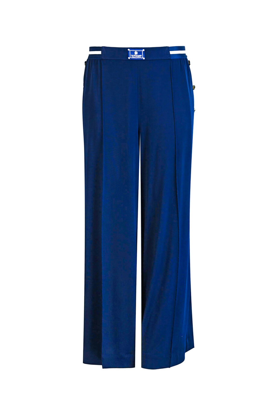 Marlene-Hose aus Jersey mit 6 Zierknöpfen, Kontrasten, 4 Taschen und zweifarbigen elastischen Bund