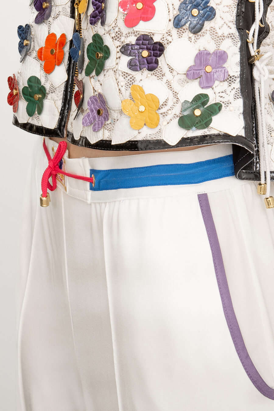 Marlene-Hose aus Jersey mit multicolor Kontrasten, 4 Taschen und elastischen Bund mit Multisize-Schnürung