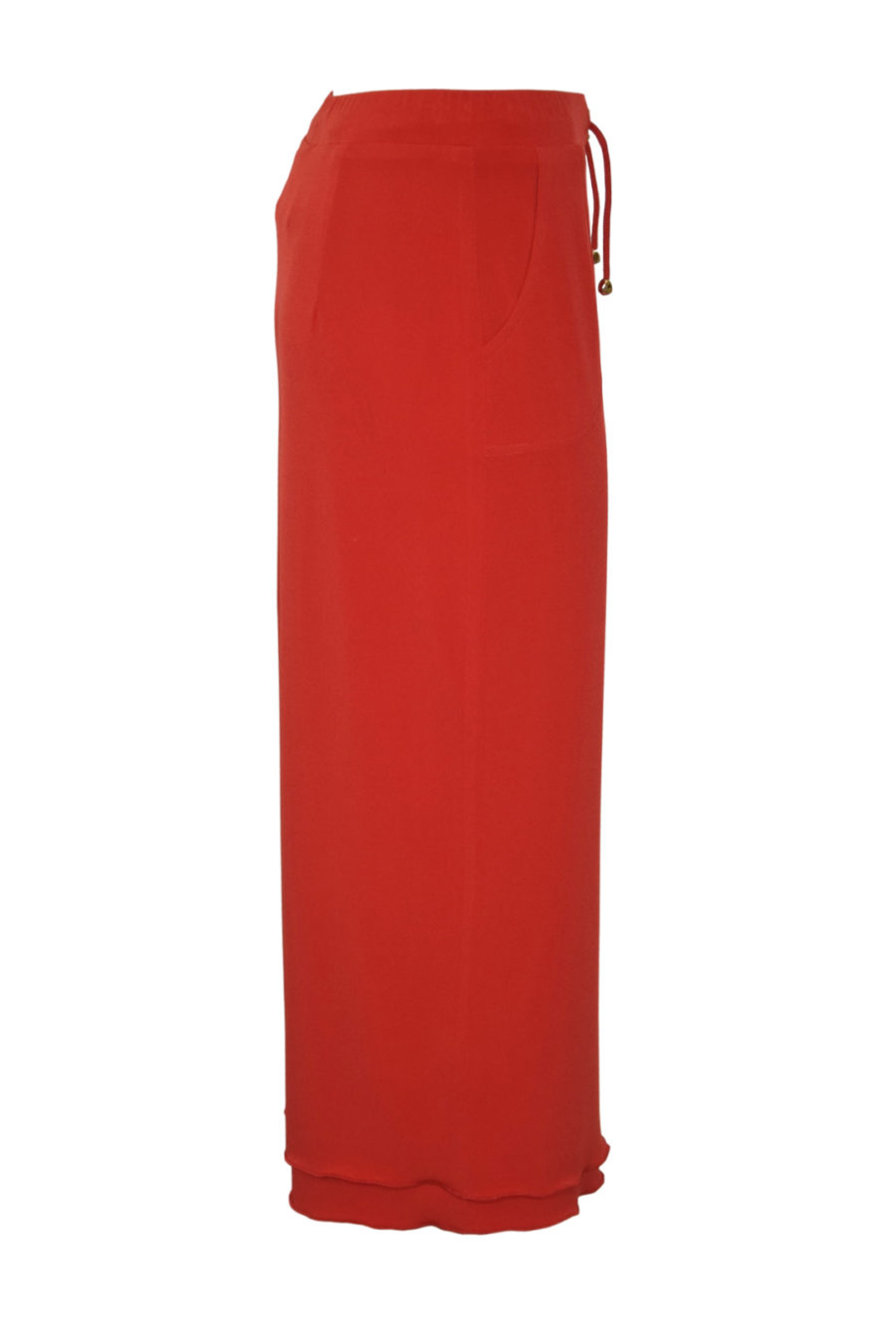 das midi-lange Modell aus fließendem, doppelt gelegten Jersey mit seinem hohen Bund mit Tunnelzug macht auf jeden Fall eine gute Figur.