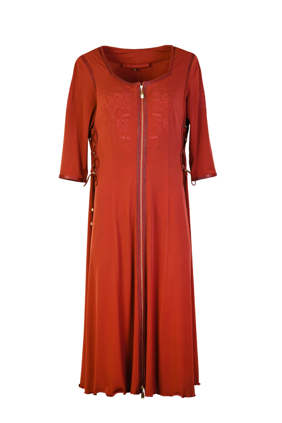 Maxikleid mit “heraldic- embroidery” und Kontrasten aus Leder in Anaconda-Optik