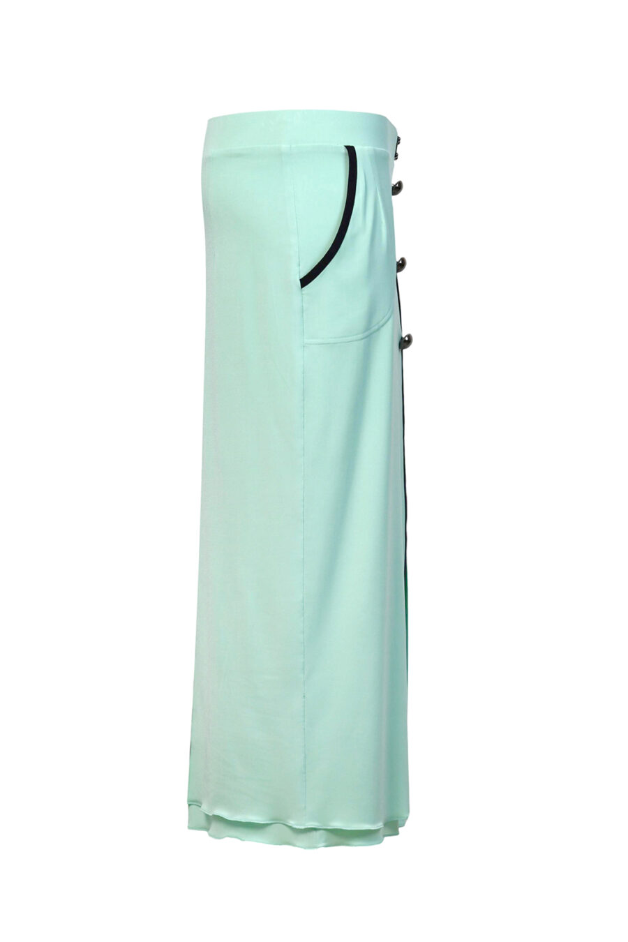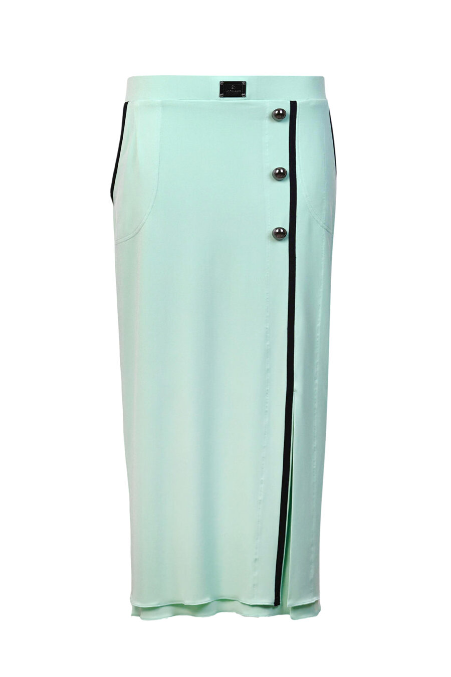 Maxirock mit seitlichem Schlitz und Taschen, schwarzen Kontrasten, 3 Zierrknöpfen und LMC-Logo aus Jersey
