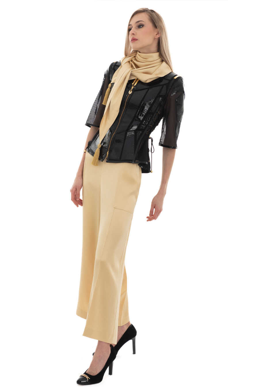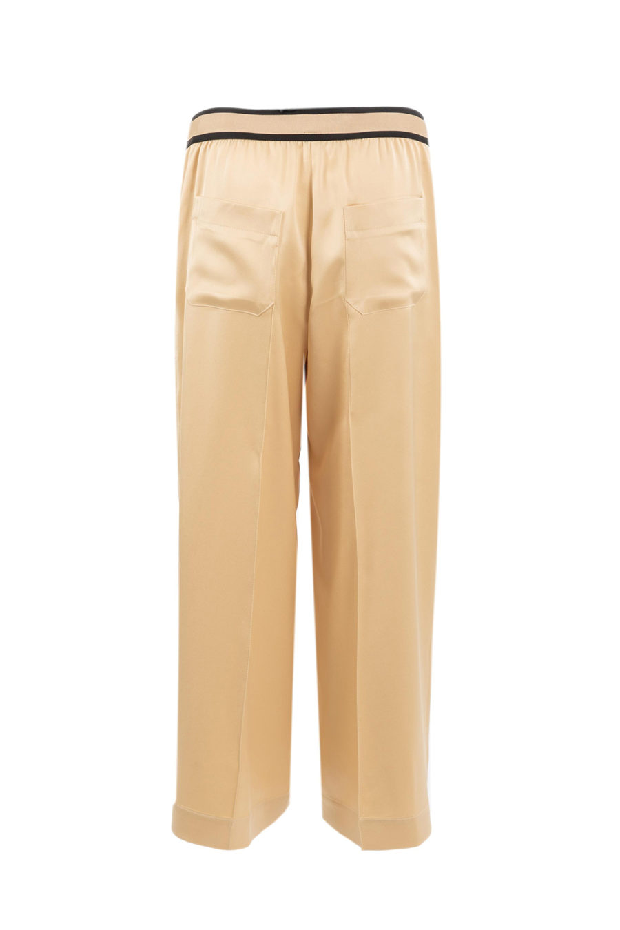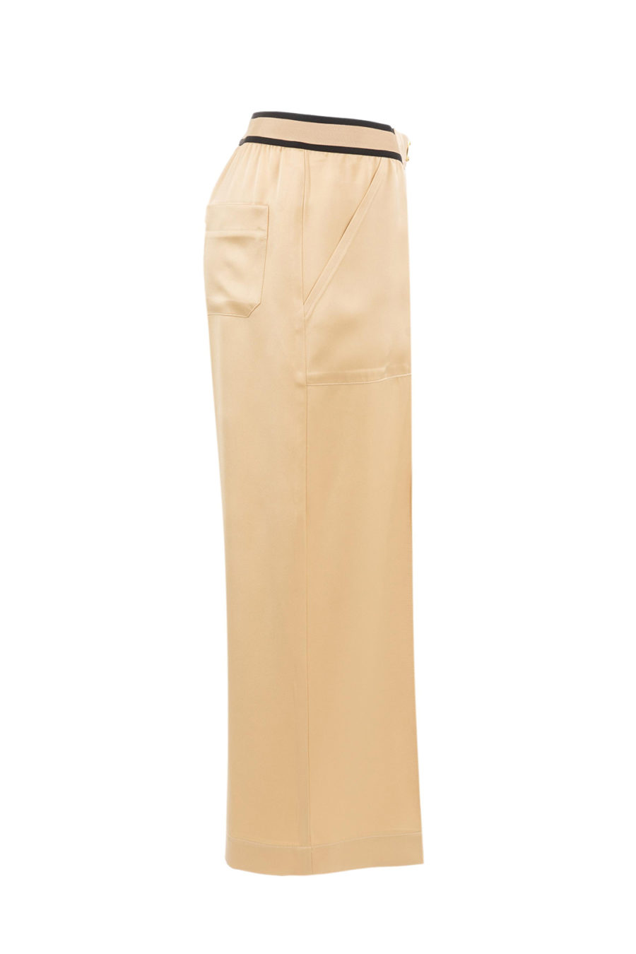 Palazzo-Hose aus reiner Seide mit 4 Taschen und zweifarbigen elastischen Bund, 7/8 Länge