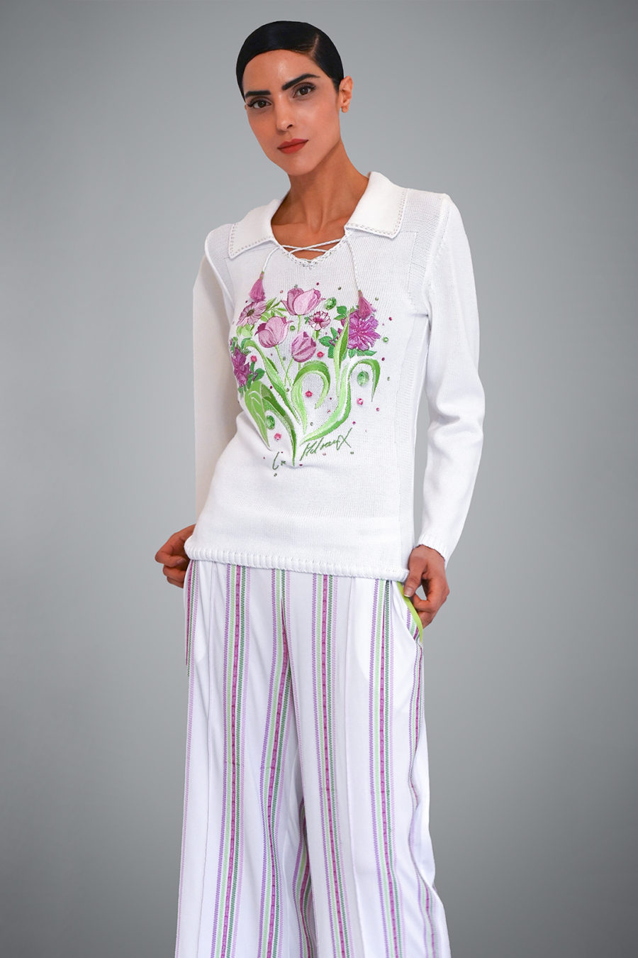 Palazzo-Hose, in Streifen bestickt, (8 Std.Stickzeit), Singlejersey, mit elastischen Bündchen und LMC-Logo